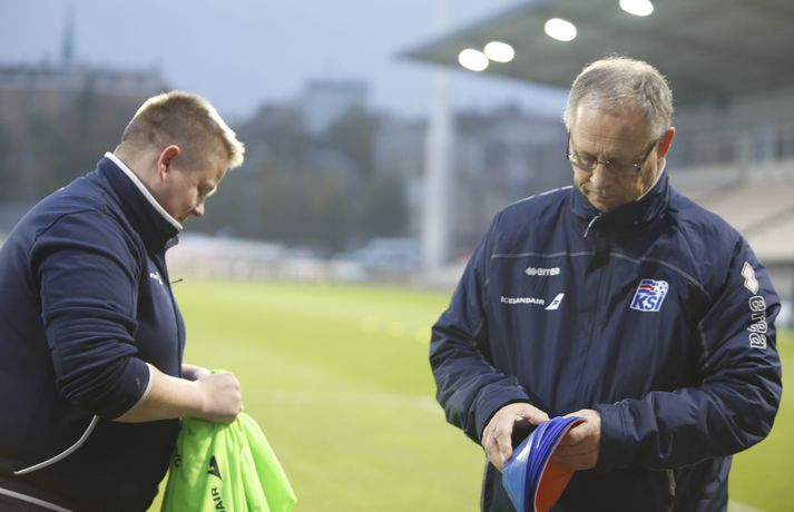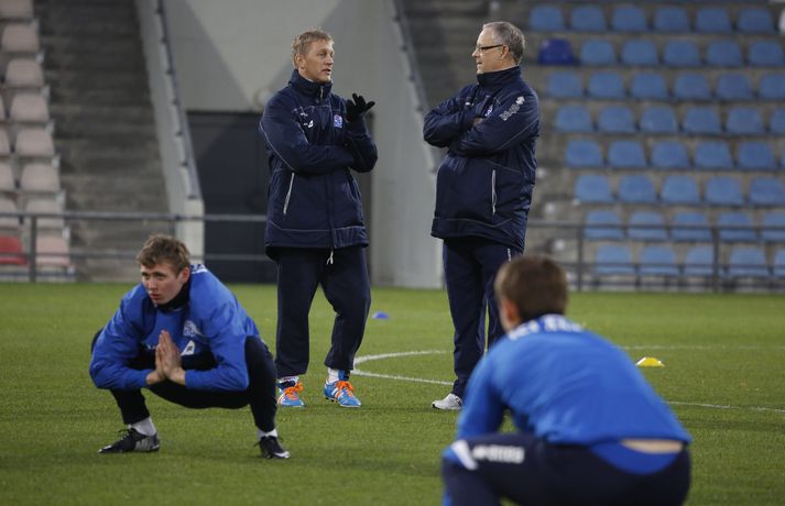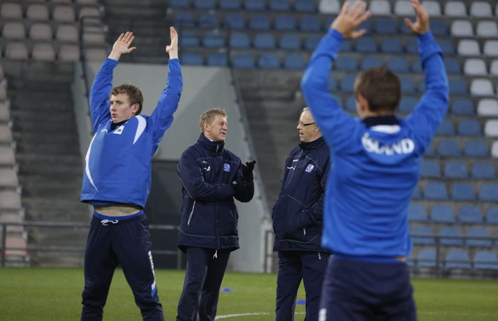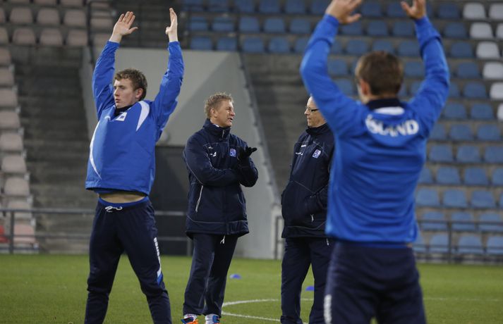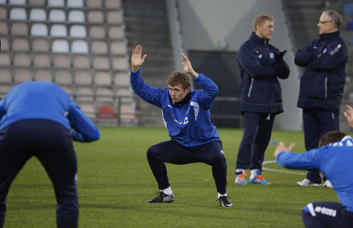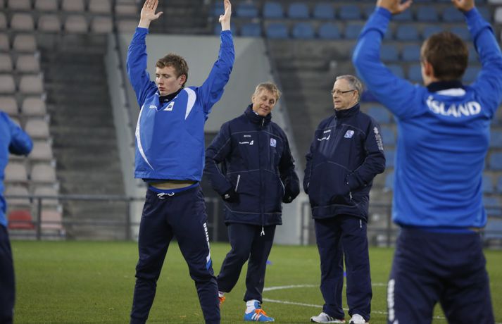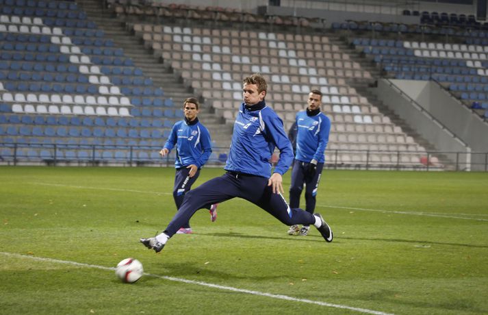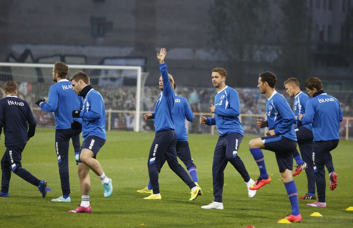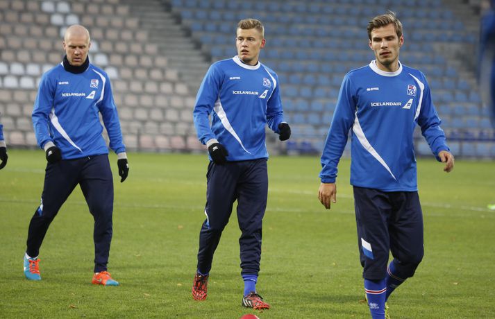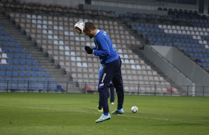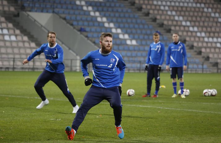 Strákarnir okkar í karlalandsliðinu í fótbolta æfðu á Skonto-vellinum í Ríga í Lettlandi í dag þar sem þeir mæta svo heimamönnum í mikilvægum leik í undankeppni EM 2016 á föstudagskvöldið. Það var létt yfir strákunum á æfingunni, en KolbeinnSigþórsson gat ekki verið með vegna smávægilegra hnémeiðsla. Hann verður þó klár fyrir leikinn á föstudaginn. Ísland vann Tyrkland, 3-0, í fyrstu umferð undankeppninnar á sama tíma og Lettland gerði markalaust jafntefli við Kasakstan. Heimamenn eru skipulagðir og erfiðir að brjóta á bak aftur.Valgarður Gíslason, ljósmyndari Fréttablaðsins og Vísis, er í Ríga og tók myndirnar sem sjá má í syrpunni hér að neðan á æfingunni í dag.