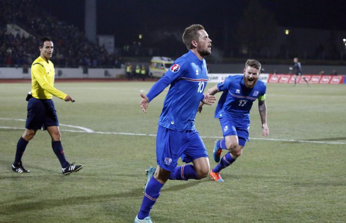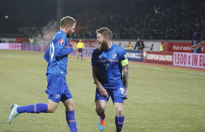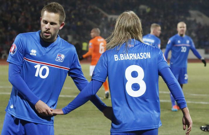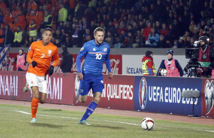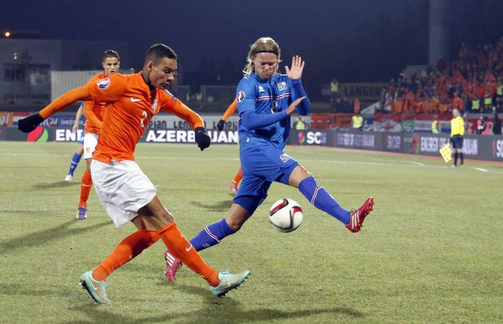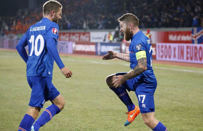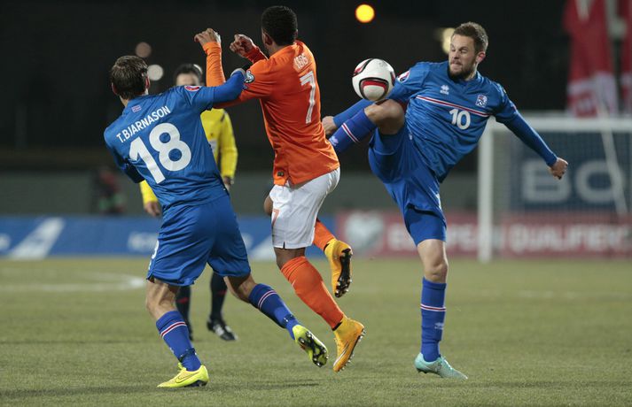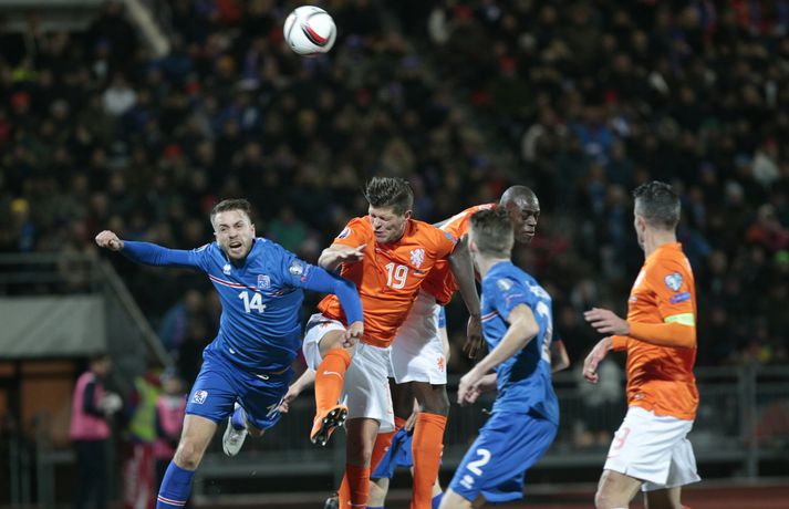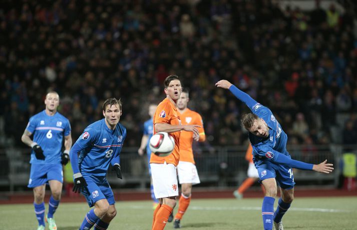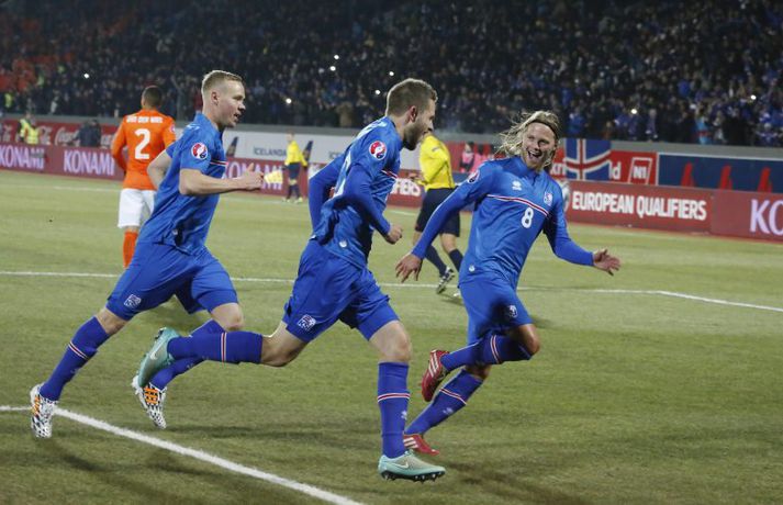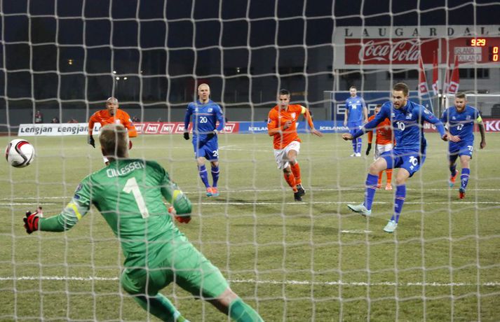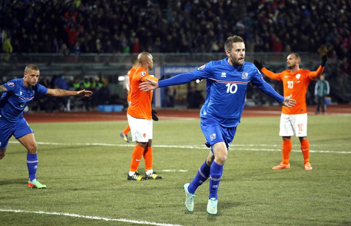 Ísland er á toppi A-riðilsins í undankeppni EM 2016 eftir sögulegan 2-0 sigur á Hollandi í Laugardalnum í kvöld. Ísland er með fullt hús stiga eftir þrjá leiki og markatöluna 8-0.Gylfi Þór Sigurðsson skoraði bæði mörk Íslands í kvöld, en hann er nú búinn að skora fjögur mörk í fyrstu þremur leikjum liðsins. Hollendingar eru nú búnir að tapa tveimur leikjum af þremur í riðlinum og eru sex stigum á eftir okkar strákum í þriðja sæti. Hér að neðan má sjá risastórt myndasafn frá Ljósmyndurum Fréttablaðsins og Vísis sem voru á vellinum í kvöld. Það voru Andri Marinó Karlsson, Vilhelm Gunnarsson og Valgarður Gíslason sem skelltu sér í Laugardalinn í kvöld og tóku þessar frábæru myndir.