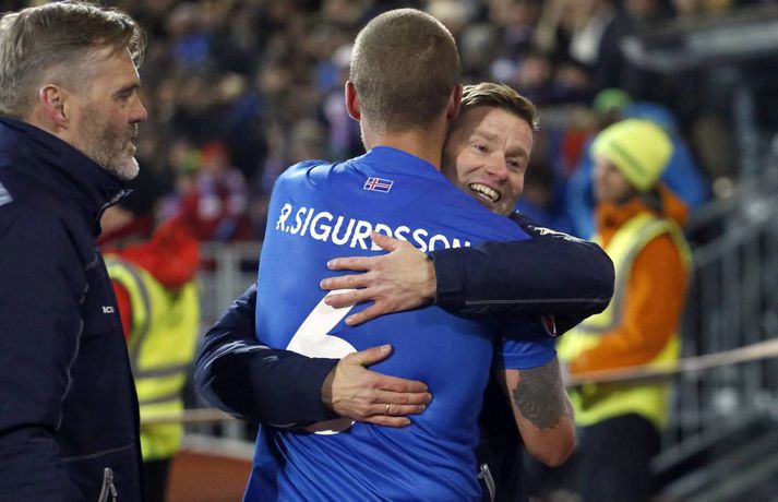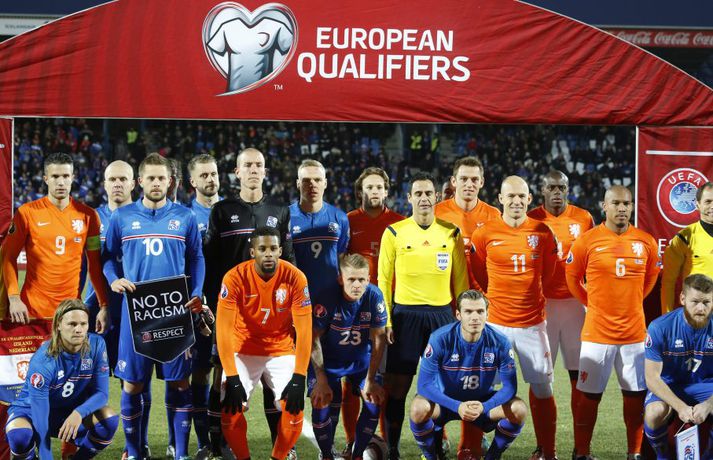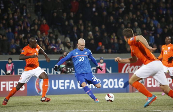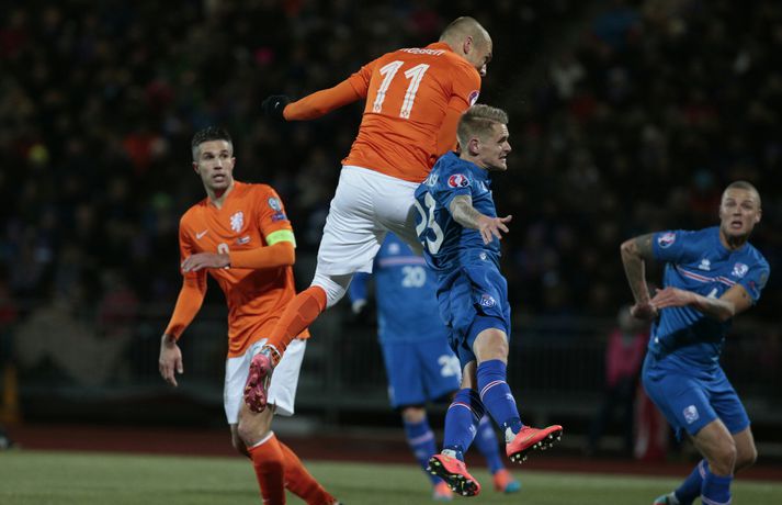 Íslenski boltinn Tengdar fréttir Í sigurliði gegn Hollandi en kemst ekki í byrjunarliðið í fallbaráttu í Noregi "Ég sagði einmitt í gríni eftir leikinn að nú væri maður aftur á leið á bekkinn hjá Brann í fallbaráttunni. Það er svolítið antiklimax,“ sagði Birkir Már Sævarsson. 13. október 2014 22:03 Robben: Hrósa Íslandi fyrir góðan varnarleik Arjen Robben hrósaði íslenska liðinu fyrir góðan varnarleik eftir 2-0 sigur Íslands á Hollandi í kvöld en sagði jafnframt að Holland hafi gefið Íslandi tvö mörk í leiknum. 13. október 2014 22:09 Gaupi og strákarnir eftir sigurinn magnaða í Dalnum Guðjón Guðmundsson ræddi við strákana okkar eftir sögulegan sigur á Hollandi í kvöld. 13. október 2014 23:02 Mark Gylfa eyðilagði fullkomna upptöku fréttamanns RÚV Fréttamaðurinn Einar Þorsteinsson var að taka upp grafalvarlega frétt fyrir fréttastofu RÚV þegar Gylfi Þór Sigurðsson kom Íslandi í 2-0 gegn Hollandi í kvöld. 13. október 2014 22:44 „Gylfi er í heimsklassa“ Landsliðsþjálfarinn Lars Lagerbäck sagði íslenska miðjumanninn einn þann besta sem hann hafi séð. 13. október 2014 22:33 Hannes: Kom ekki á óvart því við vitum hvað við getum Hannes Þór Halldórsson hélt íslenska markinu hreinu í þriðja sinn í jafn mörgum leikjum í undankeppni Evrópumótsins í fótbolta sem fram fer í Frakklandi 2016. 13. október 2014 21:57 Lars: Nánast fullkominn varnarleikur Lars Lagerbäck hrósaði íslenska liðinu í hástert á blaðamannafundi eftir leik. 13. október 2014 22:19 Aron Einar reiknar ekki með að skera skegg sitt „Þeir voru farnir í langa bolta, einhvern leik sem við fundum upp á í rauninni,“ sagði landsliðsfyrirliðinn Aron Einar Gunnarsson. 13. október 2014 22:12 Birkir Bjarna: Var Robben að spila? Birkir Bjarnason fiskaði vítaspyrnuna sem Gylfi Þór Sigurðsson skoraði úr á 10. mínútu. Hann var skiljanlega sáttur eftir sigurinn gegn Hollandi. 13. október 2014 22:14 „Aldrei séð neitt lið loka jafn vel á Robben“ Einn besti leikmaður heims náði sér engan veginn á strik gegn Íslandi í kvöld. 13. október 2014 22:41 Strákarnir fagna í klefanum eftir leik - myndband Lars Lagerback upplýsti á blaðamannafundi eftir leik hver stjórnaði fagnaðarlátunum inni í klefa. Þar væri á ferðinni mikið skemmtikraftur. 13. október 2014 22:21 Mest lesið Kristófer Acox kallar sig glæpamann Körfubolti Svona var blaðamannafundur Arnars Fótbolti Rooney að kenna að Liverpool er komið á sigurbrautina á ný? Enski boltinn Arnar Gunnlaugsson las yfir vælandi fýlupúkum hjá Real Madrid Fótbolti Mál Alberts truflar landsliðið ekki Fótbolti Hópurinn fyrir lokaleikina: Hörður og Jóhann snúa aftur Fótbolti Foden í stuði gegn Dortmund Fótbolti Littler kjörinn kynþokkafyllsti íþróttamaður heims Sport Davíð Smári tekur við Njarðvík Íslenski boltinn „Ég myndi ekki óska neinum þess að lenda í þessu“ Fótbolti Fleiri fréttir Sjáðu atvikið: Hágrátandi Hakimi frá í nokkrar vikur Óstöðvandi Osimhen, magurt hjá Mourinho og Bilbao brenndir Böl Börsunga í Belgíu Foden í stuði gegn Dortmund Spilaði meira en síðustu tvo mánuði til samans Nik fær Lindu Líf til Kristianstad Sandra María skoraði í svekkjandi leik Emelía með þrennu gegn FCK Óvænt úrslit í Meistaradeildinni „Mér finnst þetta ekki leiðinlegur fótbolti“ Davíð Smári tekur við Njarðvík Jeffs tekur við Breiðabliki Dældi fyrri afrekum inn á Instagram eftir vonbrigðin Valdi Isak en ekki Gyökeres í fyrsta landsliðshópinn sinn Leiðir Breiðabliks og Damir skilja Mál Alberts truflar landsliðið ekki Stuðningsmenn Bröndby enn á ný í vandræðum Vonar að Jóhann og Hörður gefi jafn mikið af sér og Aron Orri Steinn lengra frá því að ná þessum leikjum en þeim í síðasta glugga Hópurinn fyrir lokaleikina: Hörður og Jóhann snúa aftur Svona var blaðamannafundur Arnars Rooney að kenna að Liverpool er komið á sigurbrautina á ný? Ánægð með að mæta Íslandi „Ég myndi ekki óska neinum þess að lenda í þessu“ Fékk faðmlag frá konu Diogo Jota í miðju maraþoni Arnar Gunnlaugsson las yfir vælandi fýlupúkum hjá Real Madrid Sjáðu sigurmark Liverpool á móti Real Madrid og mörkin hjá Arsenal í Prag „Við viljum koma Haukum á fótboltakortið“ Ógnaði leikmanni Tottenham með byssu út á götu Þurfti að kaupa nýjan iPhone fyrir alla í liðinu Sjá meira