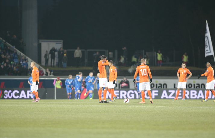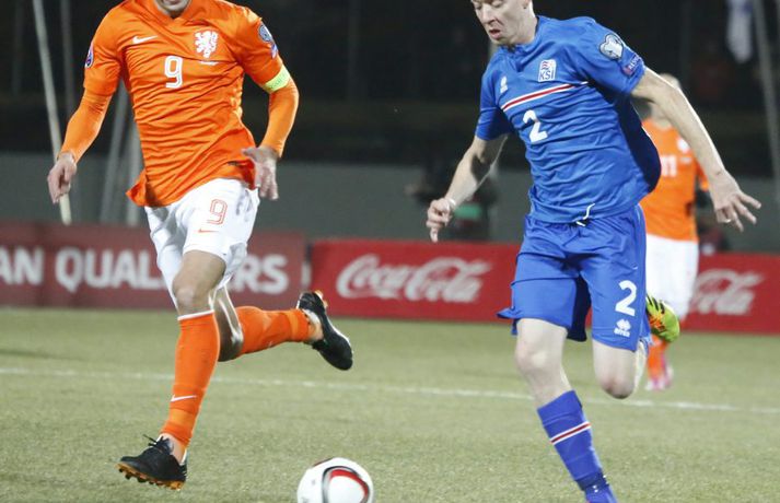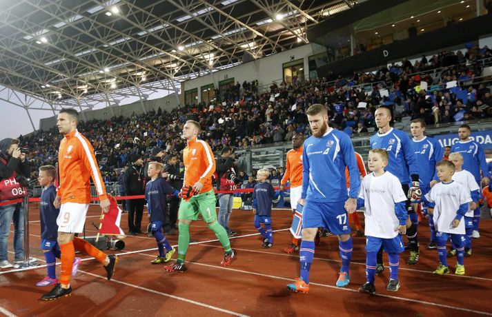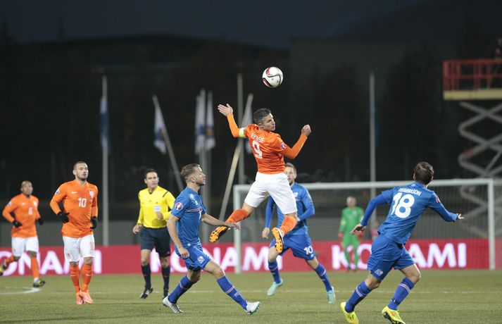 Hollendingar felldir í Dalnum | Sjáðu myndirnar Tómas Þór Þórðarson skrifar 13. október 2014 23:30 Robin van Persie gengur niðurlútur af velli í Laugardalnum í kvöld. vísir/valli Ísland er á toppi A-riðilsins í undankeppni EM 2016 eftir sögulegan 2-0 sigur á Hollandi í Laugardalnum í kvöld. Ísland er með fullt hús stiga eftir þrjá leiki og markatöluna 8-0.Gylfi Þór Sigurðsson skoraði bæði mörk Íslands í kvöld, en hann er nú búinn að skora fjögur mörk í fyrstu þremur leikjum liðsins. Hollendingar eru nú búnir að tapa tveimur leikjum af þremur í riðlinum og eru sex stigum á eftir okkar strákum í þriðja sæti. Hér að neðan má sjá risastórt myndasafn frá Ljósmyndurum Fréttablaðsins og Vísis sem voru á vellinum í kvöld. Það voru Andri Marinó Karlsson, Vilhelm Gunnarsson og Valgarður Gíslason sem skelltu sér í Laugardalinn í kvöld og tóku þessar frábæru myndir. Íslenski boltinn Tengdar fréttir Í sigurliði gegn Hollandi en kemst ekki í byrjunarliðið í fallbaráttu í Noregi "Ég sagði einmitt í gríni eftir leikinn að nú væri maður aftur á leið á bekkinn hjá Brann í fallbaráttunni. Það er svolítið antiklimax,“ sagði Birkir Már Sævarsson. 13. október 2014 22:03 Robben: Hrósa Íslandi fyrir góðan varnarleik Arjen Robben hrósaði íslenska liðinu fyrir góðan varnarleik eftir 2-0 sigur Íslands á Hollandi í kvöld en sagði jafnframt að Holland hafi gefið Íslandi tvö mörk í leiknum. 13. október 2014 22:09 Gaupi og strákarnir eftir sigurinn magnaða í Dalnum Guðjón Guðmundsson ræddi við strákana okkar eftir sögulegan sigur á Hollandi í kvöld. 13. október 2014 23:02 Mark Gylfa eyðilagði fullkomna upptöku fréttamanns RÚV Fréttamaðurinn Einar Þorsteinsson var að taka upp grafalvarlega frétt fyrir fréttastofu RÚV þegar Gylfi Þór Sigurðsson kom Íslandi í 2-0 gegn Hollandi í kvöld. 13. október 2014 22:44 „Gylfi er í heimsklassa“ Landsliðsþjálfarinn Lars Lagerbäck sagði íslenska miðjumanninn einn þann besta sem hann hafi séð. 13. október 2014 22:33 Hannes: Kom ekki á óvart því við vitum hvað við getum Hannes Þór Halldórsson hélt íslenska markinu hreinu í þriðja sinn í jafn mörgum leikjum í undankeppni Evrópumótsins í fótbolta sem fram fer í Frakklandi 2016. 13. október 2014 21:57 Lars: Nánast fullkominn varnarleikur Lars Lagerbäck hrósaði íslenska liðinu í hástert á blaðamannafundi eftir leik. 13. október 2014 22:19 Aron Einar reiknar ekki með að skera skegg sitt „Þeir voru farnir í langa bolta, einhvern leik sem við fundum upp á í rauninni,“ sagði landsliðsfyrirliðinn Aron Einar Gunnarsson. 13. október 2014 22:12 Birkir Bjarna: Var Robben að spila? Birkir Bjarnason fiskaði vítaspyrnuna sem Gylfi Þór Sigurðsson skoraði úr á 10. mínútu. Hann var skiljanlega sáttur eftir sigurinn gegn Hollandi. 13. október 2014 22:14 „Aldrei séð neitt lið loka jafn vel á Robben“ Einn besti leikmaður heims náði sér engan veginn á strik gegn Íslandi í kvöld. 13. október 2014 22:41 Strákarnir fagna í klefanum eftir leik - myndband Lars Lagerback upplýsti á blaðamannafundi eftir leik hver stjórnaði fagnaðarlátunum inni í klefa. Þar væri á ferðinni mikið skemmtikraftur. 13. október 2014 22:21 Mest lesið Kristófer Acox kallar sig glæpamann Körfubolti Svona var blaðamannafundur Arnars Fótbolti Rooney að kenna að Liverpool er komið á sigurbrautina á ný? Enski boltinn Arnar Gunnlaugsson las yfir vælandi fýlupúkum hjá Real Madrid Fótbolti Mál Alberts truflar landsliðið ekki Fótbolti Hópurinn fyrir lokaleikina: Hörður og Jóhann snúa aftur Fótbolti Foden í stuði gegn Dortmund Fótbolti Littler kjörinn kynþokkafyllsti íþróttamaður heims Sport Davíð Smári tekur við Njarðvík Íslenski boltinn „Ég myndi ekki óska neinum þess að lenda í þessu“ Fótbolti Fleiri fréttir Sjáðu atvikið: Hágrátandi Hakimi frá í nokkrar vikur Óstöðvandi Osimhen, magurt hjá Mourinho og Bilbao brenndir Böl Börsunga í Belgíu Foden í stuði gegn Dortmund Spilaði meira en síðustu tvo mánuði til samans Nik fær Lindu Líf til Kristianstad Sandra María skoraði í svekkjandi leik Emelía með þrennu gegn FCK Óvænt úrslit í Meistaradeildinni „Mér finnst þetta ekki leiðinlegur fótbolti“ Davíð Smári tekur við Njarðvík Jeffs tekur við Breiðabliki Dældi fyrri afrekum inn á Instagram eftir vonbrigðin Valdi Isak en ekki Gyökeres í fyrsta landsliðshópinn sinn Leiðir Breiðabliks og Damir skilja Mál Alberts truflar landsliðið ekki Stuðningsmenn Bröndby enn á ný í vandræðum Vonar að Jóhann og Hörður gefi jafn mikið af sér og Aron Orri Steinn lengra frá því að ná þessum leikjum en þeim í síðasta glugga Hópurinn fyrir lokaleikina: Hörður og Jóhann snúa aftur Svona var blaðamannafundur Arnars Rooney að kenna að Liverpool er komið á sigurbrautina á ný? Ánægð með að mæta Íslandi „Ég myndi ekki óska neinum þess að lenda í þessu“ Fékk faðmlag frá konu Diogo Jota í miðju maraþoni Arnar Gunnlaugsson las yfir vælandi fýlupúkum hjá Real Madrid Sjáðu sigurmark Liverpool á móti Real Madrid og mörkin hjá Arsenal í Prag „Við viljum koma Haukum á fótboltakortið“ Ógnaði leikmanni Tottenham með byssu út á götu Þurfti að kaupa nýjan iPhone fyrir alla í liðinu Sjá meira
