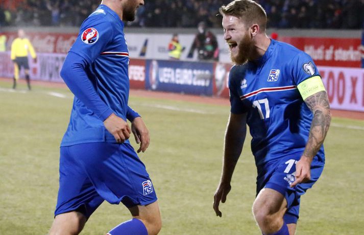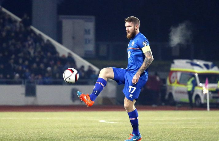 Aron Einar reiknar ekki með að skera skegg sitt „Þeir voru farnir í langa bolta, einhvern leik sem við fundum upp á í rauninni,“ sagði landsliðsfyrirliðinn Aron Einar Gunnarsson. 13. október 2014 22:12