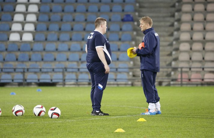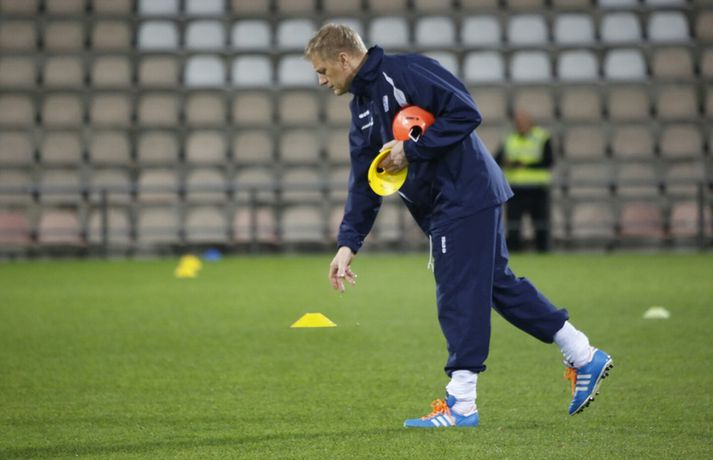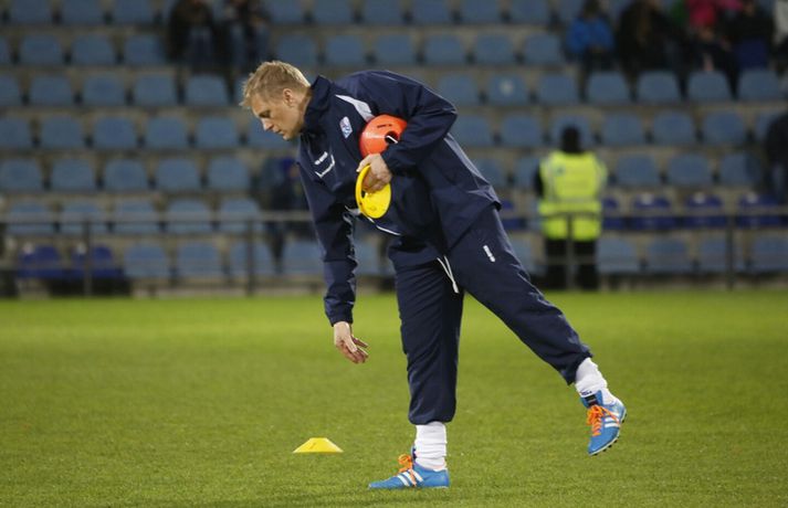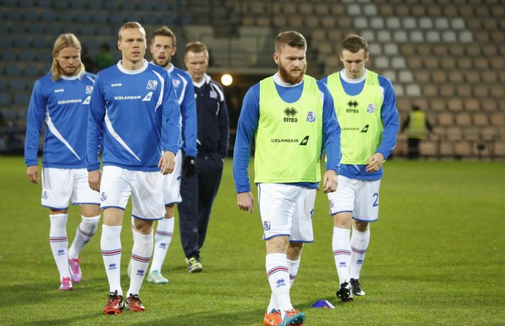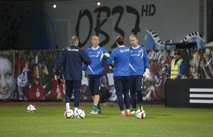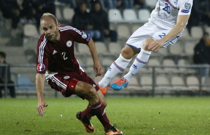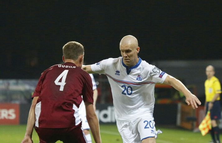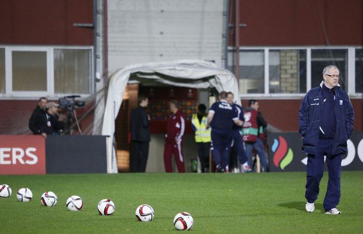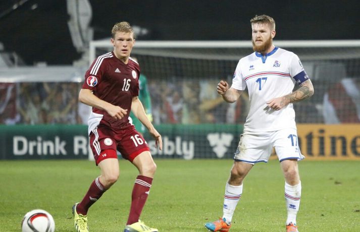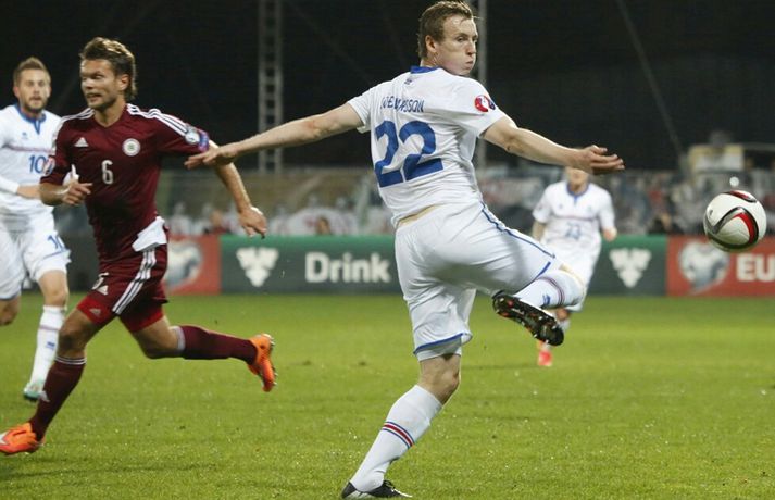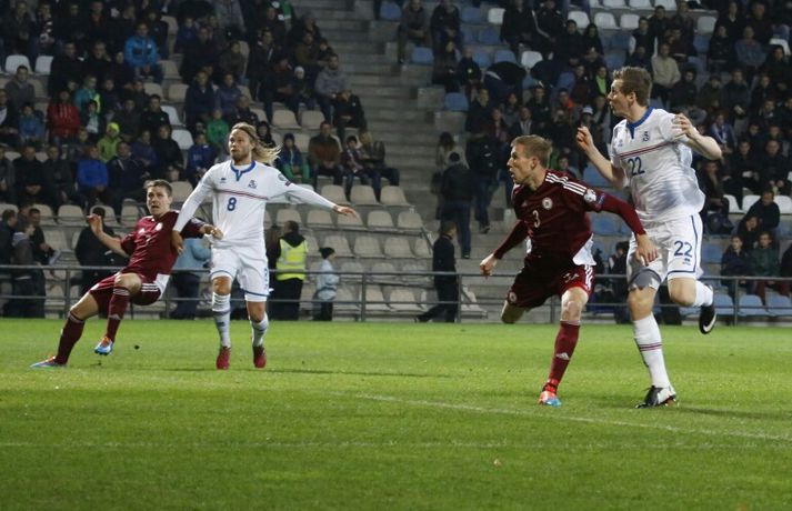 Íslenska landsliðið á toppi riðilsins eftir 3-0 sigur í Lettlandi Eiríkur Stefán Ásgeirsson í Riga skrifar 10. október 2014 17:30 Íslenska karlalandsliðið í fótbolta vann sannfærandi 3-0 sigur á Lettum í Lettlandi í kvöld í undankeppni EM 2016. Fyrsta markið kom ekki fyrr en eftir 67 mínútur en yfirburðir íslenska liðsins voru miklir allan tímann. Þetta er í fyrsta sinn í sögu íslenska karlalandsliðsins þar sem liðið vinnur tvo fyrstu leiki sína í undankeppni og liðið er á toppi riðilsins á undan Tékkum og Hollendingum. Gylfi Þór Sigurðsson braut ísinn með frábæru marki og Aron Einar Gunnarsson og varamaðurinn Rúrik Gíslason bætti síðan við mörkum eftir að íslenska liðið varð manni fleiri. Íslenska liðið sýndi mikla þolinmæði á móti varnarsinnuðu liði heimamanna og gaf ekki færi á sér. Liðið spilaði skynsamlega og hélt boltanum vel. Tveir flottir leikir að baki og nú bíða Hollendingar á mánudaginn. Íslenska liðið er þar með með sex stig og markatöluna 6-0 eftir tvo fyrstu leiki undankeppninnar. Liðið er með jafnmörg stig og Tékkar en hefur betri markatölu. Frekari umfjöllun og viðtöl koma inn á Vísi seinna í kvöld.Gylfi Þór Sigurðsson.Vísir/Valli Íslenski boltinn Mest lesið Kristófer Acox kallar sig glæpamann Körfubolti Svona var blaðamannafundur Arnars Fótbolti Rooney að kenna að Liverpool er komið á sigurbrautina á ný? Enski boltinn Arnar Gunnlaugsson las yfir vælandi fýlupúkum hjá Real Madrid Fótbolti Mál Alberts truflar landsliðið ekki Fótbolti Hópurinn fyrir lokaleikina: Hörður og Jóhann snúa aftur Fótbolti Foden í stuði gegn Dortmund Fótbolti Littler kjörinn kynþokkafyllsti íþróttamaður heims Sport Davíð Smári tekur við Njarðvík Íslenski boltinn „Ég myndi ekki óska neinum þess að lenda í þessu“ Fótbolti Fleiri fréttir Sjáðu atvikið: Hágrátandi Hakimi frá í nokkrar vikur Óstöðvandi Osimhen, magurt hjá Mourinho og Bilbao brenndir Böl Börsunga í Belgíu Foden í stuði gegn Dortmund Spilaði meira en síðustu tvo mánuði til samans Nik fær Lindu Líf til Kristianstad Sandra María skoraði í svekkjandi leik Emelía með þrennu gegn FCK Óvænt úrslit í Meistaradeildinni „Mér finnst þetta ekki leiðinlegur fótbolti“ Davíð Smári tekur við Njarðvík Jeffs tekur við Breiðabliki Dældi fyrri afrekum inn á Instagram eftir vonbrigðin Valdi Isak en ekki Gyökeres í fyrsta landsliðshópinn sinn Leiðir Breiðabliks og Damir skilja Mál Alberts truflar landsliðið ekki Stuðningsmenn Bröndby enn á ný í vandræðum Vonar að Jóhann og Hörður gefi jafn mikið af sér og Aron Orri Steinn lengra frá því að ná þessum leikjum en þeim í síðasta glugga Hópurinn fyrir lokaleikina: Hörður og Jóhann snúa aftur Svona var blaðamannafundur Arnars Rooney að kenna að Liverpool er komið á sigurbrautina á ný? Ánægð með að mæta Íslandi „Ég myndi ekki óska neinum þess að lenda í þessu“ Fékk faðmlag frá konu Diogo Jota í miðju maraþoni Arnar Gunnlaugsson las yfir vælandi fýlupúkum hjá Real Madrid Sjáðu sigurmark Liverpool á móti Real Madrid og mörkin hjá Arsenal í Prag „Við viljum koma Haukum á fótboltakortið“ Ógnaði leikmanni Tottenham með byssu út á götu Þurfti að kaupa nýjan iPhone fyrir alla í liðinu Sjá meira