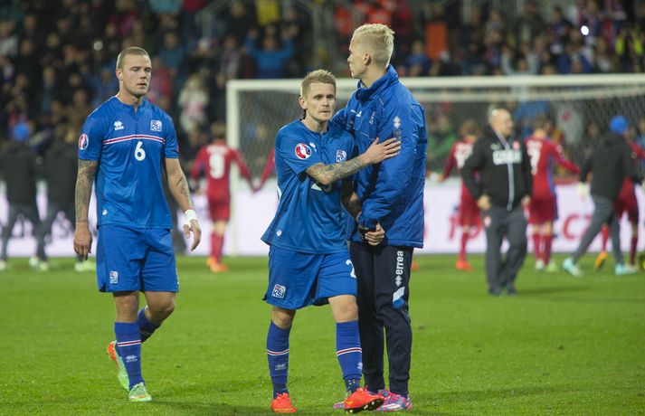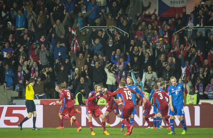 EM 2016 í Frakklandi Tengdar fréttir Íslendingar síðastir til að fá á sig mark í undankeppni EM Íslenska landsliðið hélt hreinu fram í uppbótartíma fyrri hálfleiks í fjórða leik sínum í undankeppni EM og sló þar með við öllum liðunum í undankeppninni. 16. nóvember 2014 20:52 Hannes: Sorgleg mörk að fá á sig í jafn stórum leik Hannes Þór Halldórsson, markvörður íslenska landsliðsins, var að vonum svekktur eftir 1-2 tap gegn Tékklandi í kvöld. 16. nóvember 2014 22:47 Rosicky: Jöfnunarmarkið vendipunkturinn Tomas Rosicky átti stórleik á miðjunni hjá Tékklandi í dag. 16. nóvember 2014 22:55 Einkunnir strákanna: Aron bestur en Elmar slakastur Landsliðsfyrirliðinn Aron Einar Gunnarsson var besti leikmaður karlalandsliðs Íslands í 2-1 tapinu gegn Tékkum. 16. nóvember 2014 22:05 Jón Daði: Kem eflaust út eins og skúrkurinn Jón Daði Böðvarsson var skiljanlega vonsvikinn eftir 1-2 tap gegn Tékklandi í dag en hann skoraði óheppilegt sjálfsmark í leiknum sem reyndist vera sigurmark leiksins. 16. nóvember 2014 23:02 Gylfi: Fórum aldrei almennilega í gang "Við viljum vera betri og skora fleiri mörk,“ sagði Gylfi Þór Sigurðsson. 16. nóvember 2014 23:36 Gummi Ben missti sig yfir marki Ragnars Okkar maður lýsir leiknum beint á Bylgjunni. 16. nóvember 2014 20:19 Theódór Elmar: Er óánægður með eigin frammistöðu Einstaklingsmistök gerðu það að verkum að leikskipulag íslenska landsliðsins gekk ekki upp í naumu tapi gegn Tékklandi í kvöld að mati Theódórs Elmars, leikmanns íslenska landsliðsins. 16. nóvember 2014 23:19 Kolbeinn: Enginn að væla ef við nýtum færin Kolbeinn Sigþórsson segir að leikmenn íslenska landsliðsins verði að líta í eigin barm. 16. nóvember 2014 23:11 Sjáðu fagnaðarlætin úr íslensku stúkunni | Myndband Það ætlaði allt um koll að keyra þegar Ragnar Sigurðsson skoraði fyrsta mark leiksins í kvöld beint fyrir framan stuðningsmenn íslenska landsliðsins. 16. nóvember 2014 23:37 Lagerbäck: Ég á stóran þátt í tapinu Lars Lagerbäck segir að þjálfarar íslenska liðsins hefðu átt að undirbúa sína menn betur. 16. nóvember 2014 23:24 Umfjöllun: Strákarnir felldir í Tékklandi Íslenska liðinu var kippt niður á jörðina á ný eftir drauma byrjun í undankeppni Evrópumótsins í 1-2 tapi gegn Tékklandi í Plzen í kvöld. 16. nóvember 2014 14:12 Heimir: Engin ró og miðjan komst aldrei inn í leikinn Landsliðsþjálfarinn viðurkenndi fúslega að Tékkar voru betri í leik liðanna í Plzen í kvöld. 16. nóvember 2014 22:14 Aron Einar: Erum enn í bullandi séns Aron Einar segir Ísland enn vera í bullandi séns að fara til Frakklands. 16. nóvember 2014 22:12 Kári: Þeir voru bara betri en við Miðvörðurinn svekktur eftir tapið gegn Tékklandi í kvöld. 16. nóvember 2014 23:00 Ragnar: Verður einhvern tímann að tapa Ragnar Sigurðsson, miðvörður Íslands, var hundfúll í leikslok, en Ragnar skoraði mark Íslands gegn Tékklandi í kvöld. 16. nóvember 2014 22:13 Mest lesið Vonast til að komast í Kórinn: „Menn hafa aldrei séð annað eins“ Fótbolti Landsleiknum aflýst og framhaldið óljóst Fótbolti Fær þrjár milljónir á dag næstu sex árin fyrir að gera ekkert Sport Stöðufundur í Laugardal klukkan 10:30 Fótbolti Enska úrvalsdeildin í jólaköttinn Enski boltinn Elsta konan til klára Járnkarlinn Sport Landsliðskonur aðstoðuðu ökumenn í vanda Fótbolti Leikið á Þróttaravelli á miðvikudag Fótbolti Markvörður Inter banaði háöldruðum manni í hjólastól Sport Birnir frá Akureyri í Garðabæ Íslenski boltinn Fleiri fréttir Spánn og Þýskaland mætast í úrslitum Anguissa hetja meistaranna Hákon Rafn hélt hreinu þegar Brentford flaug áfram Jón Dagur gulltryggði sigurinn með sínu fyrsta marki Leikið á Þróttaravelli á miðvikudag Vinícius Júnior íhugar að yfirgefa Real Madríd Kaupir sér tveggja milljarða króna hús Alexander Máni með fimm mörk í tveimur leikjum og Ísland áfram Birnir frá Akureyri í Garðabæ Klobbaði íslensku strákana og fór á flug á netmiðlum Hættir með Fram Landsliðskonur aðstoðuðu ökumenn í vanda Landsleiknum aflýst og framhaldið óljóst Segir að Slot verði að taka tvo leikmenn út úr Liverpool-liðinu Vonast til að komast í Kórinn: „Menn hafa aldrei séð annað eins“ „Alltaf gaman að fá nýjar raddir inn“ Gleðifréttir fyrir Argentínumenn: Messi vill spila á HM Stöðufundur í Laugardal klukkan 10:30 Enska úrvalsdeildin í jólaköttinn Nýi íþróttastjóri Kjartans stal mörgæs og endaði í fangelsi í Singapúr Tyrkneska sambandið segir dómara hafa veðjað á þúsundir leikja Brendan Rodgers sagði starfinu sínu lausu eftir ásakanir Segir sitt fyrrum lið í krísu Fylltu í eyðurnar: Vanmetnasti leikmaður deildarinnar? Fyrirliði Real Madríd þarf að fara í aðgerð á hné Einkaviðtal við Carrick: „Hálfgerð tískubylgja sem einkennir fótboltann í dag“ Markaóður Stefán Ingi eftirsóttur Öllu búin skildi snjóspáin raungerast „Eitthvað sem við erum óvanar eftir Þjóðadeildina“ Heimir kynntur til leiks í Árbænum Sjá meira