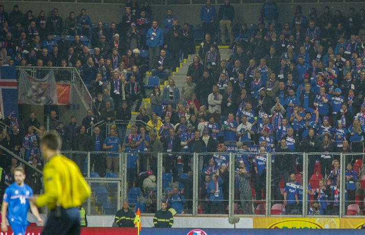 Sjáðu fagnaðarlætin úr íslensku stúkunni | Myndband Það ætlaði allt um koll að keyra þegar Ragnar Sigurðsson skoraði fyrsta mark leiksins í kvöld beint fyrir framan stuðningsmenn íslenska landsliðsins. 16. nóvember 2014 23:37