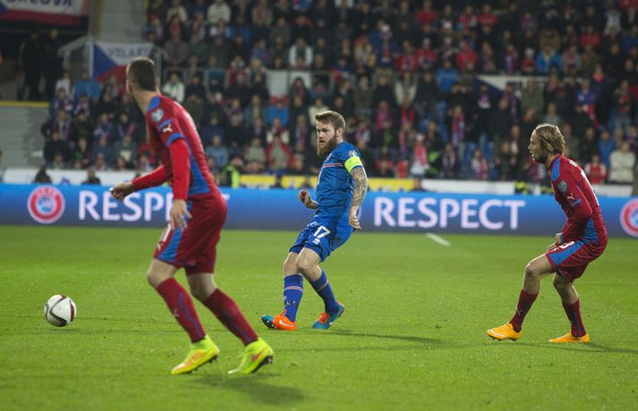 Einkunnir strákanna: Aron bestur en Elmar slakastur Landsliðsfyrirliðinn Aron Einar Gunnarsson var besti leikmaður karlalandsliðs Íslands í 2-1 tapinu gegn Tékkum. 16. nóvember 2014 22:05