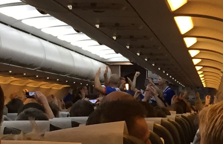 Tólfan til Tékklands: Stuð og stemning í Tólfunni Anton Ingi Leifsson skrifar 16. nóvember 2014 12:00 Stuð og stemning í vélinni. Vísir/Davíð Félagarnir Davíð Óskar Ólafsson og Þorsteinn Magnússon tilheyra fríðum og háværum hópi grjótharðra stuðningsmanna karlalandsliðsins í knattspyrnu. Hópurinn heldur til Tékklands í dag en framundan er stórleikur heimamanna gegn Íslendingum í A-riðli undankeppni Evrópumótsins 2016. Leikið verður í Plzeň og verður flautað til leiks klukkan 19:45. Eiríkur Stefán Ásgeirsson og Gummi Ben verða með beina texta- og útvarpslýsingu frá leiknum á Vísi. Hér fyrir ofan má sjá myndir frá ferðinni hingað til frá þeim félögum og myndbönd hér fyrir neðan. Einnig eru myndbönd frá Tólfunni.Stuð í flugvélinni: Post by Studningssveitin Tólfan. Ennþá meira stuð: Post by Studningssveitin Tólfan. Tólfan: Rútuferð til Plzen: Post by Studningssveitin Tólfan. Stuð og stemning: EM 2016 í Frakklandi Mest lesið Vonast til að komast í Kórinn: „Menn hafa aldrei séð annað eins“ Fótbolti Fær þrjár milljónir á dag næstu sex árin fyrir að gera ekkert Sport Landsleiknum aflýst og framhaldið óljóst Fótbolti Stöðufundur í Laugardal klukkan 10:30 Fótbolti Enska úrvalsdeildin í jólaköttinn Enski boltinn Elsta konan til klára Járnkarlinn Sport Markvörður Inter banaði háöldruðum manni í hjólastól Sport Nýi íþróttastjóri Kjartans stal mörgæs og endaði í fangelsi í Singapúr Fótbolti Segir að Slot verði að taka tvo leikmenn út úr Liverpool-liðinu Enski boltinn Brendan Rodgers sagði starfinu sínu lausu eftir ásakanir Fótbolti Fleiri fréttir Landsliðskonur aðstoðuðu ökumenn í vanda Landsleiknum aflýst og framhaldið óljóst Segir að Slot verði að taka tvo leikmenn út úr Liverpool-liðinu Vonast til að komast í Kórinn: „Menn hafa aldrei séð annað eins“ „Alltaf gaman að fá nýjar raddir inn“ Gleðifréttir fyrir Argentínumenn: Messi vill spila á HM Stöðufundur í Laugardal klukkan 10:30 Enska úrvalsdeildin í jólaköttinn Nýi íþróttastjóri Kjartans stal mörgæs og endaði í fangelsi í Singapúr Tyrkneska sambandið segir dómara hafa veðjað á þúsundir leikja Brendan Rodgers sagði starfinu sínu lausu eftir ásakanir Segir sitt fyrrum lið í krísu Fylltu í eyðurnar: Vanmetnasti leikmaður deildarinnar? Fyrirliði Real Madríd þarf að fara í aðgerð á hné Einkaviðtal við Carrick: „Hálfgerð tískubylgja sem einkennir fótboltann í dag“ Markaóður Stefán Ingi eftirsóttur Öllu búin skildi snjóspáin raungerast „Eitthvað sem við erum óvanar eftir Þjóðadeildina“ Heimir kynntur til leiks í Árbænum Danir heiðra Michael Laudrup De Bruyne verður lengi frá Túfa rekinn frá Val Fyrrum markmannsþjálfari Liverpool látinn Juventus rak þjálfarann eftir aðeins sjö mánuði „Mikilvægt fyrir hópinn að fá þessa sigurtilfinningu“ Besta liðið aðeins í sautjánda sæti í mörkum í opnum leik „Varnarleikurinn er bara stórslys“ Blaðamannafundur KSÍ: Þorsteinn og Glódís sátu fyrir svörum Guardiola: Of snemmt til að hafa áhyggjur af Arsenal Kennir Carvajal um lætin eftir El Clasico Sjá meira