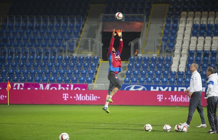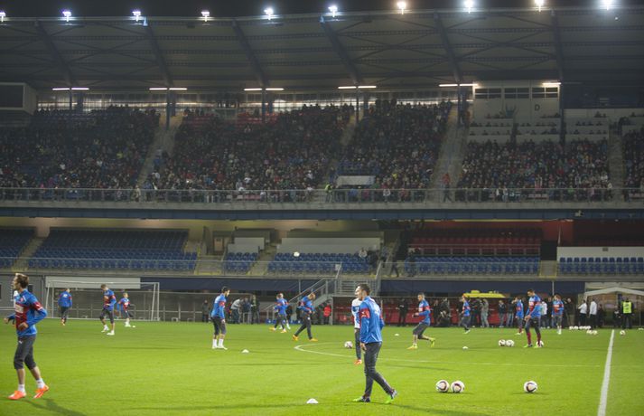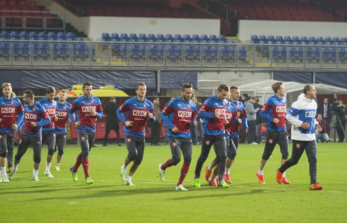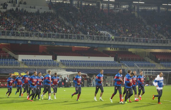 Fjöldi stuðningsmanna tékkenska landsliðsins var mættur til að fylgjast með opinni æfingu liðsins á Doosan-leikvanginum í gærkvöldi. Pavel Vrba, landsliðsþjálfari Tékklands, er í miklum metum í Plzen en hann var þjálfari Viktoria Plzen í fimm ár. Hann gerði liðið tvívegis að meisturum í Tékklandi, vann einn bikarmeistaratitil og kom því tvívegis í riðlakeppni Meistaradeildar Evrópu. „Ég þekki stuðningsmenn í Plzen og trúi því að margir muni mæta í kvöld. Það gleður mig enda viljum við opna okkur fyrir fólkinu.“ Daníel Rúnarsson, ljósmyndari 365, er í Tékklandi og tók þessar myndir á æfingunni í gær.