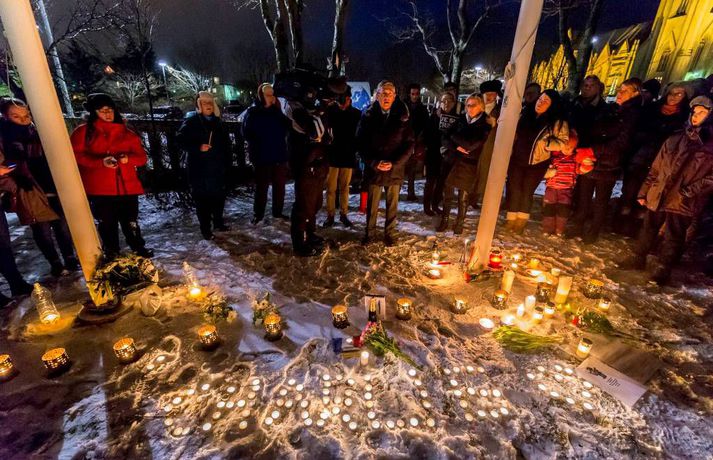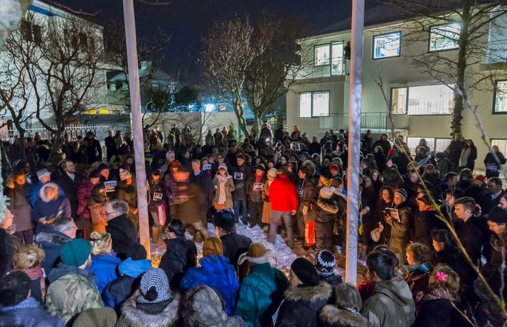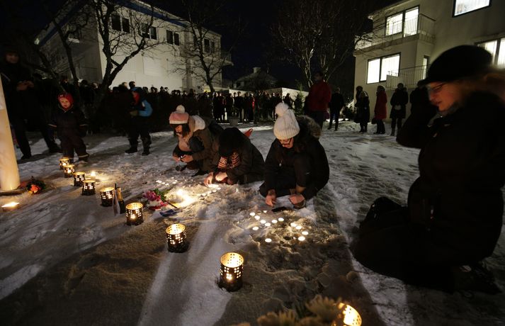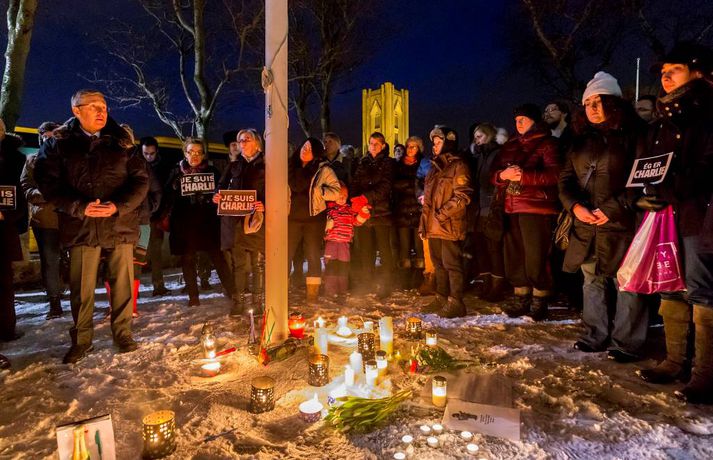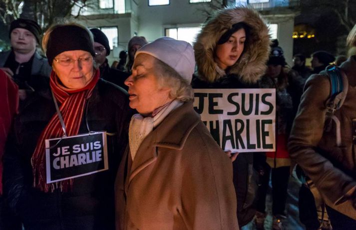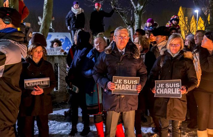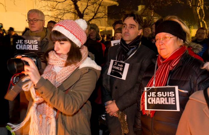 300 á samstöðufundi við franska sendiráðið Sunna Karen Sigurþórsdóttir skrifar 8. janúar 2015 19:19 Um 300 manns mættu á samstöðufund fyrir utan franska sendiráðið í kvöld, til minningar þeirra tólf sem féllu í árásunum í París í gær. Fólk lagði blóm og kerti við fánana í sendiráðsgarðinum og flutti sendiherra Frakka, Philippe O‘Quin, stutt ávarp. Þá gátu þeir sem vildu ritað nafn sitt í minningarbók sem lá frammi í sendiráðinu. Í myndaalbúminu hér fyrir neðan má sjá myndir frá fundinum, en þær tók Vilhelm Gunnarsson ljósmyndari. Innlegg frá Franska sendiráðið á Íslandi | Ambassade de France en Islande. Innlegg frá Franska sendiráðið á Íslandi | Ambassade de France en Islande. Innlegg frá Franska sendiráðið á Íslandi | Ambassade de France en Islande. Innlegg frá Franska sendiráðið á Íslandi | Ambassade de France en Islande. Charlie Hebdo Mest lesið „Þetta verður allt saman stórvarasamt í fyrramálið“ Veður Spyr hvort ökumenn myndu keyra á gangandi á götunni Innlent Myndskeiðið segi ekki alla söguna Innlent Ein hinna reknu segir konunum kastað fyrir ljónin Innlent „Auðvitað slær þetta mig ekki vel“ Innlent Kallar Biden ljótan að utan sem innan og vill hann í fangelsi Erlent Fastur heima í þrjá daga út af engum mokstri Innlent Svipt barnabótunum vegna flugmiðakaupa Erlent „Fyrstu þrjú árin sem ég var veik voru algjört helvíti“ Innlent Útlit fyrir nauman sigur frjálslyndra og fyrsta samkynheigða forsætisráðherra landsins Erlent Fleiri fréttir Samskipti hjólreiðamanna og ökumanna ekki upp á marga fiska Fjárhagsstaðan alvarleg hjá ríkislögreglustjóra Formannskosningu Pírata frestað Fastur heima í þrjá daga út af engum mokstri Þurfa mögulega að fresta formannskosningu vegna formgalla Flughálka í kortunum, breytingar hjá bönkunum og formaður Pírata Reyna að lokka íslenska lækna heim Óvenjulegir smáskjálftar reyndust sprengingar Ein hinna reknu segir konunum kastað fyrir ljónin Fylgjast með smáskjálftum við Bláa lónið Kirkjuþing skorar á stjórnvöld að hækka sóknargjald Ósammála ráðherra um að atkvæðajafnvægi sé mannréttindamál Ungir innflytjendur á Íslandi ekki jafn jaðarsettir og í Svíþjóð Leita til UNESCO vegna Vonarskarðs og kæra kynjahalla Aukin verðbólga áhyggjuefni og asahláka í kortunum Spyr hvort ökumenn myndu keyra á gangandi á götunni Séra Flosi Magnússon fallinn frá Að jafnaði tilkynnt um tólf kynferðisbrot í hverri viku Var ofurölvi þegar hann hljóp yfir Reykjanesbraut „Auðvitað slær þetta mig ekki vel“ Fundi slitið án árangurs og nýr ekki boðaður „Fyrstu þrjú árin sem ég var veik voru algjört helvíti“ Vill sjá byggingakrana í Úlfarsárdal á næsta ári Reikna með flughálum vegum Fagnar aðgerðum en telur húsnæðispakkann „fremur rýran“ Úrskurðarnefnd klofin en framkvæmdaleyfi stendur Engar uppsagnir í farvatninu Þrír handteknir á stolnum bíl og dýnur teknar ófrjálsri hendi Létu sleðaveðrið ekki fram hjá sér fara Séreignarleiðin gerð varanleg og nýtist til tíu ára Sjá meira