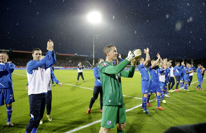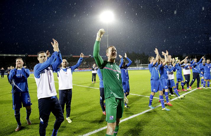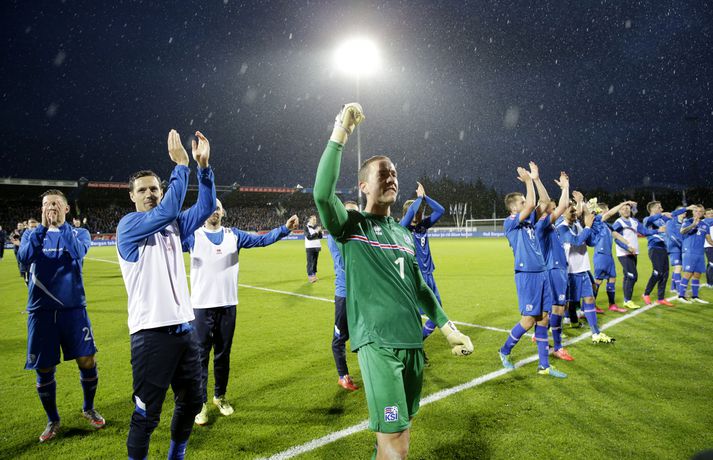EM 2016 í Frakklandi Tengdar fréttir Þjóðsöngur Íslands gerði allt vitlaust: Tíu þúsund manns tóku undir Þegar þjóðsöngur Íslands var spilaður á Laugardalsvellinum í kvöld átti sér stað stund sem enginn áhorfandi mun gleyma á ævi sinni. 6. september 2015 18:17 Þjálfari Kasakstan óskaði Íslandi til hamingju Þjálfari Kasakstan óskaði Íslandi til hamingju með sætið á EM á blaðamannafundi eftir leikinn en hann var ánægður með stigið. 6. september 2015 21:07 Einkunnir íslenska liðsins: Aron Einar bestur Aron Einar Gunnarsson var maður leiksins að mati Vísis í 0-0 jafntefli gegn Kasakstan í kvöld. Jafnteflið gulltryggir sæti Íslands á EM næsta sumar. 6. september 2015 20:42 Umfjöllun og viðtöl: Ísland - Kasakstan 0-0 | Evrópudraumurinn rættist Markalaust jafntefli var nóg til að tryggja Íslandi sæti í lokakeppni stórmóts í knattspyrnu karla í fyrsta sinn í sögunni. 6. september 2015 00:01 Ísland á EM eftir jafntefli gegn Kasakstan Íslenska karlalandsliðið í knattspyrnu tryggði sér í kvöld sæti á Evrópumótinu sem fram fer í Frakklandi næsta sumar með 0-0 jafntefli gegn Kasakstan á heimavelli. 6. september 2015 20:29 Sigmundur Davíð fagnaði með strákunum Forsætisráðherrann lét sig ekki vanta í gleðina sem ríkti í búningsherbergi landsliðsins í leikslok. 6. september 2015 21:01 Óbreytt byrjunarlið gegn Kasakstan Íslenska landsliðið í knattspyrnu teflir fram óbreyttu byrjunarliði frá 1-0 sigrinum á Hollandi á dögunum gegn Kasakstan í kvöld. Íslenska liðið þarf eitt stig til að gulltryggja sæti á lokakeppni EM í fyrsta sinn. 6. september 2015 17:24 Íslendingar lifandi á Twitter yfir leiknum: "Ísland er að fara á EM eins og Kasakstaðan er núna" Fólk á samfélagsmiðlum er vel með á nótunum yfir landsleik Íslands og Kazakstan, en margir notendur Twitter nota þann samskiptamiðil til að segja sína skoðun á leiknum og hrósa strákunum okkar. 6. september 2015 19:29 Mest lesið Uppgjörið: Þýskaland - Ísland 42-31 | Þrot í Þýskalandi Handbolti Líður alltaf yfir hana þegar hún kemur í mark Sport „Hefði séð eftir því alla ævi“ Íslenski boltinn KR - ÍA 109-75 | KR-ingar sýndu allar sínar bestu hliðar þegar þeir burstuðu Skagamenn Körfubolti Scholes hættir og setur einhverfan son sinn í fyrsta sætið Enski boltinn „Mjög sáttur með samninginn“ Íslenski boltinn „Hann ætti bara að skrifa afsökunarbiblíuna“ Körfubolti Uppgjörið: Valur - Grindavík 55-90 | Taplausir Grindvíkingar kjöldrógu Val Körfubolti Uppgjörið: Álftanes-Njarðvík 93-92 | Heitur Haukur var hetjan á Álftanesinu Körfubolti Rekinn fyrir ummæli sín um krabbameinssjúka handboltagoðsögn Handbolti Fleiri fréttir Juventus ræður Spalletti út tímabilið Meistaradeildin skiptir um bjór og Heineken snýr sér að padel Aron Einar kominn á toppinn Tölur úr Bestu: Hallgrímur Mar bjó til langflest færi Fantasýn: „Þessi vörn er eitthvað skrímsli“ Scholes hættir og setur einhverfan son sinn í fyrsta sætið Rúmar tvær milljónir í boði ef þú finnur hundinn hans Aarons Ramsey Carrick í einkaviðtali: Sigurinn á Anfield stór stund fyrir Man. Utd Hefur spilað 16 mínútur og fengið tvö rauð spjöld Bættu Evrópumet AC Milan liðsins með Gullit og Van Basten innanborðs Slot: Engin auka pressa við þetta tap Real Madrid vill stórar skaðabætur frá UEFA „Mjög sáttur með samninginn“ „Hefði séð eftir því alla ævi“ Magnús Már í viðræðum við HK Bað alla nema þjálfarann afsökunar Vísar slúðrinu til föðurhúsanna Ísak Bergmann lagði upp gegn Bayern „Við tókum bara þá ákvörðun að fara í Svanavatnið“ Albert og Mikael Egill í vondum málum á Ítalíu Palace neitar að sleppa takinu á Liverpool „Eitthvað sem ég mun aldrei gleyma“ Einkunnir Íslands: Þrjár heitastar í frostinu Viktor Bjarki skoraði og lagði upp í fyrsta byrjunarliðsleiknum Uppgjörið: Ísland - Norður-Írland 3-0 | Áfram hluti af elítunni Pedri gæti verið frá keppni til langs tíma Arteta fyrstur stjóranna á fætur Þorsteinn breytir engu á milli leikja Snjóbræðslukerfi Þróttar kom KSÍ til bjargar Tölur úr Bestu 2025: Klúðraði langflestum dauðafærum í sumar Sjá meira