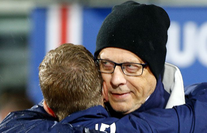 Sjáðu fögnuð strákanna í leikslok | Myndir 6. september 2015 21:35 Gífurlegur fögnuður strákana í leikslok. vísir/vilhelm Strákarnir okkar í karlalandsliðinu í knattspyrnu tryggðu sér eins og kunnugt er sæti á Evrópumótinu í Frakklandi sem fer fram næsta sumar.Eftir jafntefli gegn Kazakstan var ljóst að Ísland væri komið á EM og út braust mikill fögnuður. Ljósmyndari Vísis og Fréttablaðsins, Vilhelm Gunnarsson, fangaði stemninguna í leikslok og náði myndunum sem má sjá hér efst í fréttinni. EM 2016 í Frakklandi Tengdar fréttir Þjóðsöngur Íslands gerði allt vitlaust: Tíu þúsund manns tóku undir Þegar þjóðsöngur Íslands var spilaður á Laugardalsvellinum í kvöld átti sér stað stund sem enginn áhorfandi mun gleyma á ævi sinni. 6. september 2015 18:17 Þjálfari Kasakstan óskaði Íslandi til hamingju Þjálfari Kasakstan óskaði Íslandi til hamingju með sætið á EM á blaðamannafundi eftir leikinn en hann var ánægður með stigið. 6. september 2015 21:07 Einkunnir íslenska liðsins: Aron Einar bestur Aron Einar Gunnarsson var maður leiksins að mati Vísis í 0-0 jafntefli gegn Kasakstan í kvöld. Jafnteflið gulltryggir sæti Íslands á EM næsta sumar. 6. september 2015 20:42 Umfjöllun og viðtöl: Ísland - Kasakstan 0-0 | Evrópudraumurinn rættist Markalaust jafntefli var nóg til að tryggja Íslandi sæti í lokakeppni stórmóts í knattspyrnu karla í fyrsta sinn í sögunni. 6. september 2015 00:01 Ísland á EM eftir jafntefli gegn Kasakstan Íslenska karlalandsliðið í knattspyrnu tryggði sér í kvöld sæti á Evrópumótinu sem fram fer í Frakklandi næsta sumar með 0-0 jafntefli gegn Kasakstan á heimavelli. 6. september 2015 20:29 Sigmundur Davíð fagnaði með strákunum Forsætisráðherrann lét sig ekki vanta í gleðina sem ríkti í búningsherbergi landsliðsins í leikslok. 6. september 2015 21:01 Óbreytt byrjunarlið gegn Kasakstan Íslenska landsliðið í knattspyrnu teflir fram óbreyttu byrjunarliði frá 1-0 sigrinum á Hollandi á dögunum gegn Kasakstan í kvöld. Íslenska liðið þarf eitt stig til að gulltryggja sæti á lokakeppni EM í fyrsta sinn. 6. september 2015 17:24 Íslendingar lifandi á Twitter yfir leiknum: "Ísland er að fara á EM eins og Kasakstaðan er núna" Fólk á samfélagsmiðlum er vel með á nótunum yfir landsleik Íslands og Kazakstan, en margir notendur Twitter nota þann samskiptamiðil til að segja sína skoðun á leiknum og hrósa strákunum okkar. 6. september 2015 19:29 Mest lesið Uppgjörið: Þýskaland - Ísland 42-31 | Þrot í Þýskalandi Handbolti Líður alltaf yfir hana þegar hún kemur í mark Sport „Hefði séð eftir því alla ævi“ Íslenski boltinn KR - ÍA 109-75 | KR-ingar sýndu allar sínar bestu hliðar þegar þeir burstuðu Skagamenn Körfubolti Scholes hættir og setur einhverfan son sinn í fyrsta sætið Enski boltinn „Mjög sáttur með samninginn“ Íslenski boltinn „Hann ætti bara að skrifa afsökunarbiblíuna“ Körfubolti Uppgjörið: Valur - Grindavík 55-90 | Taplausir Grindvíkingar kjöldrógu Val Körfubolti Uppgjörið: Álftanes-Njarðvík 93-92 | Heitur Haukur var hetjan á Álftanesinu Körfubolti Rekinn fyrir ummæli sín um krabbameinssjúka handboltagoðsögn Handbolti Fleiri fréttir Juventus ræður Spalletti út tímabilið Meistaradeildin skiptir um bjór og Heineken snýr sér að padel Aron Einar kominn á toppinn Tölur úr Bestu: Hallgrímur Mar bjó til langflest færi Fantasýn: „Þessi vörn er eitthvað skrímsli“ Scholes hættir og setur einhverfan son sinn í fyrsta sætið Rúmar tvær milljónir í boði ef þú finnur hundinn hans Aarons Ramsey Carrick í einkaviðtali: Sigurinn á Anfield stór stund fyrir Man. Utd Hefur spilað 16 mínútur og fengið tvö rauð spjöld Bættu Evrópumet AC Milan liðsins með Gullit og Van Basten innanborðs Slot: Engin auka pressa við þetta tap Real Madrid vill stórar skaðabætur frá UEFA „Mjög sáttur með samninginn“ „Hefði séð eftir því alla ævi“ Magnús Már í viðræðum við HK Bað alla nema þjálfarann afsökunar Vísar slúðrinu til föðurhúsanna Ísak Bergmann lagði upp gegn Bayern „Við tókum bara þá ákvörðun að fara í Svanavatnið“ Albert og Mikael Egill í vondum málum á Ítalíu Palace neitar að sleppa takinu á Liverpool „Eitthvað sem ég mun aldrei gleyma“ Einkunnir Íslands: Þrjár heitastar í frostinu Viktor Bjarki skoraði og lagði upp í fyrsta byrjunarliðsleiknum Uppgjörið: Ísland - Norður-Írland 3-0 | Áfram hluti af elítunni Pedri gæti verið frá keppni til langs tíma Arteta fyrstur stjóranna á fætur Þorsteinn breytir engu á milli leikja Snjóbræðslukerfi Þróttar kom KSÍ til bjargar Tölur úr Bestu 2025: Klúðraði langflestum dauðafærum í sumar Sjá meira