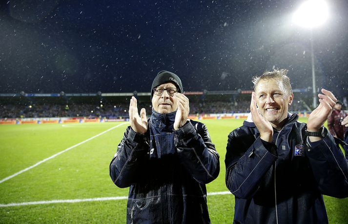 Strákarnir okkar í karlalandsliðinu í knattspyrnu tryggðu sér eins og kunnugt er sæti á Evrópumótinu í Frakklandi sem fer fram næsta sumar.Eftir jafntefli gegn Kazakstan var ljóst að Ísland væri komið á EM og út braust mikill fögnuður. Ljósmyndari Vísis og Fréttablaðsins, Vilhelm Gunnarsson, fangaði stemninguna í leikslok og náði myndunum sem má sjá hér efst í fréttinni.