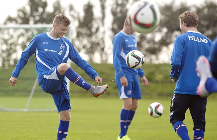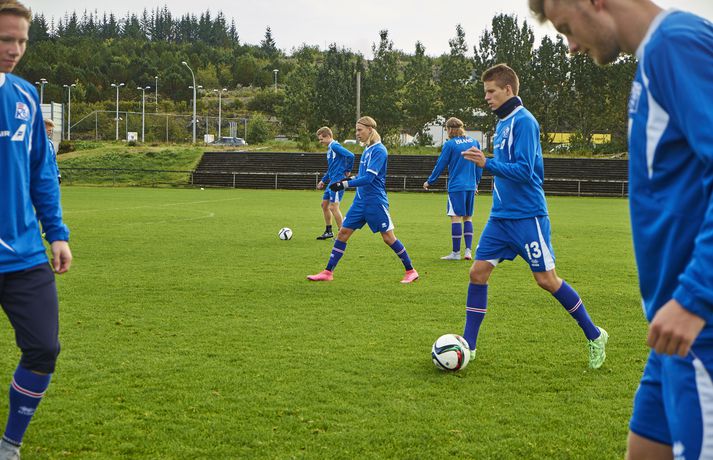 Strákarnir í U-21 árs landsliðinu taka á morgun á móti Frakklandi í undankeppni EM 2017. Leikurinn á morgun fer fram á Kópavogsvelli og hefst klukkan 14:00. Hægt verður að fylgjast með honum í beinni textalýsingu á Vísi. Á þriðjudaginn verða strákarnir svo aftur á ferðinni þegar þeir mæta Norður-Írlandi á Fylkisvelli. Ísland fór vel af stað í undankeppninni og vann öruggan 3-0 sigur á Makedóníu í fyrsta leik sínum. Höskuldur Gunnlaugsson skoraði tvívegis og Elías Már Ómarsson eitt mark. Íslenska liðið æfði fyrr í dag á æfingasvæði Vals á Hlíðarenda þar sem þeir undirbjuggu sig fyrir leikinn mikilvæga á morgun.Anton Brink, ljósmyndari Fréttablaðsins og Vísis, var á staðnum og tók myndirnar sem fylgja fréttinni.