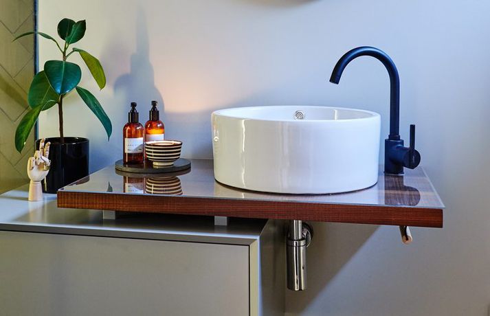 Innanhússhönnuðurinn Sæbjörg Guðjónsdóttir segir eldhús og baðherbergi þau herbergi heimilisins sem skipta hvað mestu þegar kemur að því að selja eignir. Standi til að gera breytingar á þessum rýmum borgar sig því að vanda vel til verka og hugsa málin til enda. Sjálf keypti hún hús árið 2013 og hannaði maðal annars bæði bað og gestasalerni. Hún féllst á að sýna afraksturinn.Hvernig myndir þú lýsa baðherbergjunum þínum?„Baðherbergin eru tvö og hvort með sinn karakterinn. Aðalbaðherbergið er kvenlegra með frístandandi kari, steyptu gólfi og marmara. Það má segja að það sé undir smá Parísar-áhrifum. Gestabaðherbergið er aðeins töffaralegra með svörtum flísum sem lagðar eru í „herringbone“ eða fiskibeinamynstur frá gólfi og upp í loft. Í sturtunni er svo lóðrétt óbein lýsing sem flæðir skemmtilega yfir flísarnar. Innréttingar og blöndunartæki eru eins á báðum baðherbergjunum; sprautulakkaðar með viðarborðplötu og vaski á borði. Tækin eru svört.“Stærra baðherbergið er kvenlegra með frístandandi kari, steyptu gólfi og marmara. MYNDIR/ANTONÁ hvað lagðir þú áherslu – hver var innblásturinn? „Mig langaði til að prufa eitthvað nýtt og njóta þess að hanna fyrir sjálfa mig og mína. Hugmyndin var að skapa notalega en skemmtilega stemningu – eitthvað í líkingu við herbergi á „boutique“ hótelum þar sem oft ríkir nútímalegt og útpælt þema,“ segir Sæbjörg en henni þykir gaman að hanna baðherbergi sem minna á hótelbaðherbergi. „Ég vil hafa smá lúxus í bland við notagildi enda verja flestir miklum tíma á baðherberginu.“ Gestabaðið var upphaflega minna en Sæbjörg og eiginmaður hennar stækkuðu það til að rýma fyrir sturtu. „Það er því frekar langt og mjótt en ég ákvað að leika mér að lengdinni með því að leggja flísarnar í fiskibeinamynstur sem beinist að endanum og heldur áfram upp vegginn og svo yfir loftið í sturtunni. Ég setti svo sérstaklega glært gler án festinga til að trufla ekki mynstrið.“Hvaðan koma innréttingarnar, gólfefni og flísar? Ég hannaði þær og fékk GKS til að smíða. Gólfið var steypt, pússað og mattlakkað. Flísarnar á gestabaðinu eru úr Flísabúðinni en ég lét saga þær niður til að gera mynstrið. Ég sérpantaði svo vaska og blöndunartæki frá Ástralíu því ég fann ekki það sem mig langaði í hér heima,“ segir Sæbjörg en hún er dugleg að fylgjast með nýjungum sem rata ekki alltaf hingað til lands. „Ég reyni alltaf að skapa eitthvað nýtt fyrir hvern viðskiptavin og reyni yfirleitt að sérpanta eitthvað frá útlöndum enda ekkert gaman að fá hönnuð til að hanna fyrir þig rými sem er svo bara alveg eins og hjá næsta manni,“ segir Sæbjörg en hún hefur komið að hönnun hótela, veitingastaða og verslana ásamt því að hanna fyrir einkaheimili og skrifstofur.“Á gestabaðinu eru svartar flísar sem lagðar eru í fiskibeinamynstur.Að hverju þarf að huga þegar baðherbergi er breytt? „Ég mæli auðvitað með að fólk leiti til fagmanns sem kemur með góðar lausnir og hannar rýmið svo það nýtist sem best. Baðherbergi og eldhús eru þau herbergi sem selja hvað mest og mikilvægt að hugsa sig vel um áður en farið er af stað í breytingar. Það þarf að hugsa rýmið til enda og skipuleggja það vel.“Að hverju þarf helst að huga varðandi lýsinguna? „Hún hefur mikið að segja á baðherberjum og þarf að vera góð til að rýmið nýtist sem best. Að mínu mati þarf að vera góð blanda af beinni og óbeinni lýsingu. Oft breytir miklu að bæta dimmer á ljósin sem fyrir eru og best er að hafa þau ekki öll á sama slökkvara til að geta skapað mismunandi stemningu.“ Sé ljós staðsett beint fyrir ofan spegil og vask myndar það að sögn Sæbjargar skugga á andlitið. „Því þarf oft að bæta við vegglýsingu sem skín framan á andlit eins og margir kannast við í förðunarherberjum leikhúsanna. Þetta skiptir sérstaklega máli ef ætlunin er að mála sig við spegilinn.“Hvaða skraut og fylgihlutir finnst þér tilheyra á baðinu?„Það fer alveg eftir karakter íbúa. Mér finnst fólk þó mega vera aðeins djarfara ef það er með gestabaðherbergi og nota til dæmis hringlaga spegil, skemmtilega vegglampa eða hangandi ljós. Það má líka alveg hugsa út fyrir kassann og skella myndum upp á vegg eða á hillu. Punkturinn yfir i-ið er svo auðvitað góður ilmur, sápur og kannski upprúlluð þvottastykki sem bíða gesta.“Er einhver baðherbergistíska ríkjandi um þessar mundir? „Mér finnst margir vera að gera þau aðeins persónulegri. Blöndunartæki í öðrum litum en krómi eins og til dæmis messing eða svörtu eru líka áberandi. Sömuleiðis opnar sturtur og frístandandi baðkör. Þá er ekki endilega verið að skella flísum á öll gólf og upp um alla veggi, enda þarf þess heldur ekki. Það er til dæmis vel hægt að nota málningu eins og Akrýl 7 frá Litalandi en hún er frábær í stað flísa. Þá finnst mér lögun og stærð flísa líka vera að breytast. Þessar hefðbundnu 30x60 eru að víkja fyrir skemmtilegum stærðum eins og 80x80 og 10X10 svo dæmi séu nefnd. Þegar kemur að fylgihlutum og skrauti má segja að Aesop og La:Bruket sápurnar tröllríði öllu ásamt fallegum grænum plöntum sem lífga upp á rýmið."