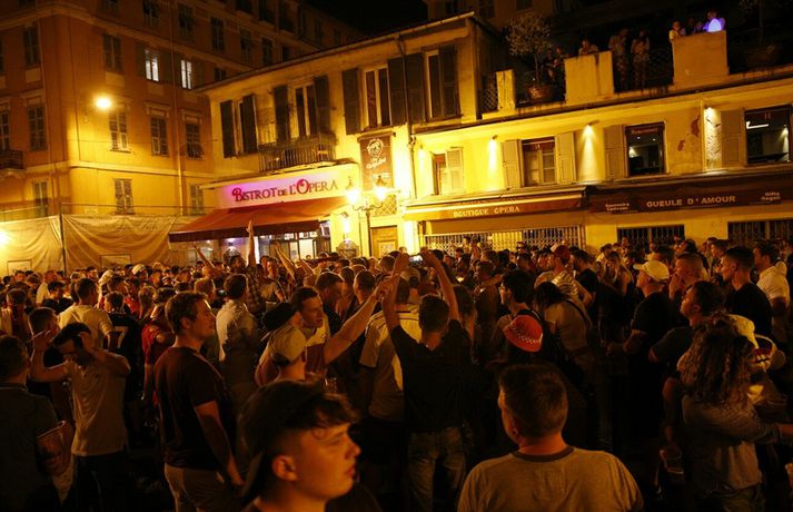 Íslenskir stuðningsmenn hafa streymt til frönsku Rivierunar í gær og í dag og það var mjög flott íslensk stemmning í miðbæ Nice í kvöld. Ísland mætir Englandi í sextán liða úrslitum á Allianz Riviera leikvanginum í Nice klukkan 19.00 að íslenskum tíma annað kvöld. Það er lokaleikur sextán liða úrslitanna og sigurvegarinn mætir gestgjöfum Frakka í átta liða úrslitunum. Íslendingar fengu þrjú þúsund miða á leikinn samkvæmt opinberum tölum frá UEFA en þeir gætu mögulega orðið fleiri því heyrst hefur af því að margir Íslendingar hafa verið að redda sér miðum undanfarna daga og því gæti þessi tala hækkað eitthvað. Vilhelm Gunnarsson, ljósmyndari Vísis og Fréttablaðsins, var á ferðinni í gamla miðbænum í Nice í kvöld og fangaði stemninguna með þessum skemmtilegum myndum fyrir ofan og neðan. Það má búast við frábærri stemmningu í Nice fram að leik á morgun og Vísir verður á staðnum og hitti fyrir íslenska stuðningsfólkið sem er komið til að hjálpa strákunum okkar að vinna Englending annað kvöld.Vísir/VilhelmVísir/VilhelmVísir/VilhelmVísir/VilhelmVísir/VilhelmVísir/VilhelmFjör í miðbæ Nice í kvöld.Vísir/VilhelmVísir/VilhelmVísir/Vilhelm