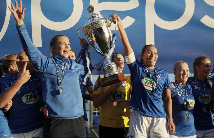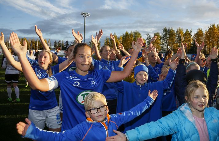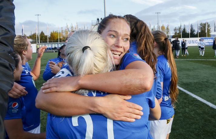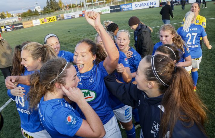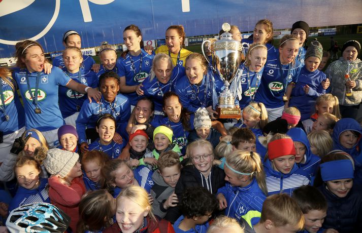 Stjarnan Íslandsmeistari í fjórða sinn | Myndaveisla Ingvi Þór Sæmundsson skrifar 30. september 2016 20:51 Stjörnukonur fögnuðu af innlifun í leikslok. vísir/eyþór Stjarnan tryggði sér í dag fjórða Íslandsmeistaratitilinn á síðustu sex árum.Garðbæingar unnu þá öruggan 4-0 sigur á FH á Samsung-vellinum. Katrín Ásbjörnsdóttir skoraði tvö mörk og þær Lára Kristín Pedersen og Ásgerður Stefanía Baldursdóttir sitt markið hvor. Breiðablik vann titilinn í fyrra en Stjarnan reyndist sterkari í ár þrátt fyrir að talsverðar breytingar hefðu orðið á liðinu í vetur. Stjarnan vann alls 14 af 18 deildarleikjum sínum í sumar og endaði með 44 stig, fimm stigum meira en Breiðablik.Eyþór Árnason, ljósmyndari Fréttablaðsins og Vísis, var á Samsung-vellinum í dag og tók þessar skemmtilegu myndir sem fylgja fréttinni. Pepsi Max-deild kvenna Tengdar fréttir Harpa fékk gullskóinn | Lacasse hirti bronsskóinn Harpa Þorsteinsdóttir varð langmarkahæst í Pepsi-deild kvenna með 20 mörk. 30. september 2016 18:12 Harpa: Er að upplifa allan tilfinningaskalann "Ég er fegin, þakklát og allt þarna á tilfinningaskalanum,“ segir Harpa Þorsteinsdóttir, leikmaður Stjörnunnar, eftir að liðið hafði tryggt sér Íslandsmeistaratitilinn í Pepsi-deild kvenna árið 2016. Liðið vann FH 4-0 á Samsung-vellinum í Garðabæ í kvöld. 30. september 2016 18:54 Ólafur: Það er búið að ganga mikið á og því er ég ótrúlega stoltur "Ég er mjög stoltur af stelpunum og þetta er búið að vera frábært tímabil hjá okkur,“ segir Ólafur Þór Guðbjörnsson, þjálfari Stjörnunnar, eftir að liðið hafði tryggt sér Íslandsmeistaratitilinn í Pepsi-deild kvenna árið 2016. 30. september 2016 18:25 KR bjargaði sér á ótrúlegan hátt | Selfoss féll Vann 3-2 sigur á ÍA eftir að hafa lent 2-0 undir. Selfoss féll eftir jafntefli í Árbænum. 30. september 2016 17:54 Titillinn aftur í Garðabæinn: Stjarnan Íslandsmeistari 2016 Stjarnan vann öruggan 4-0 sigur á FH í lokaumferð Pepsi-deildar kvenna í kvöld. 30. september 2016 17:45 Fyrsta tap Breiðabliks staðreynd | Úrslit dagsins Blikar töpuðu fyrsta leiknum sínum í sumar í lokaumferð Pepsi-deildar kvenna. 30. september 2016 17:56 Katrín: Þó einhver verði ólétt eða önnur slíti krossbönd, þá kemur alltaf einhver inn "Tilfinningin gæti ekki verið betri,“ segir Katrín Ásbjörnsdóttir, leikmaður Stjönunnar, eftir að liðið hafði tryggt sér Íslandsmeistaratitilinn í Pepsi-deild kvenna árið 2016. Liðið vann FH 4-0 á Samsung-vellinum í Garðabæ í kvöld. 30. september 2016 18:33 Ásgerður: Ótrúlega stolt að fá að vera fyrirliði í svona liði "Það er ótrúlega gott að vera komin með titilinn aftur hingað í Garðabæinn,“ segir Ásgerður Stefanía Baldursdóttir, fyrirliði Stjörnunnar, eftir að liðið hafði tryggt sér Íslandsmeistaratitilinn í Pepsi-deild kvenna árið 2016. 30. september 2016 18:47 Mest lesið Kristófer Acox kallar sig glæpamann Körfubolti Littler kjörinn kynþokkafyllsti íþróttamaður heims Sport Þurfti að kaupa nýjan iPhone fyrir alla í liðinu Fótbolti Ógnaði leikmanni Tottenham með byssu út á götu Enski boltinn Arsenal jafnaði rúmlega aldargamalt félagsmet Fótbolti Segir Amorim ekki geta gert kraftaverk Fótbolti Sjáðu sigurmark Liverpool á móti Real Madrid og mörkin hjá Arsenal í Prag Fótbolti Liverpool vann risaslaginn Fótbolti Besta tenniskona heims tekur þátt í nýrri „Baráttu kynjanna“ Sport „Við viljum koma Haukum á fótboltakortið“ Íslenski boltinn Fleiri fréttir „Við viljum koma Haukum á fótboltakortið“ Fram líka fljótt að finna nýja ást „Í ástarsorg er gott að finna sér nýja ást sem fyrst“ Fanndís hefur ekkert heyrt frá Val og íhugar að hætta „Það verður hundleiðinlegt að spila við Val“ Hermann tekinn við Val Fóru nýja leið í ár og auglýstu eftir þjálfara: Tommy Nielsen ráðinn Pablo og Óskar Örn inn í þjálfarateymi Hauka FH-ingar kveðja Kjartan Henry Tölur úr Bestu: Bjartur Bjarmi fór í flestar tæklingar af öllum Gísli semur við Skagamenn Óskar Smári tekur við Stjörnunni Bretinn ráðinn tæknilegur ráðgjafi hjá Val Fram þvertekur fyrir metnaðarleysi og leitar að nýjum þjálfurum Tölur úr Bestu: Hallgrímur Mar bjó til langflest færi „Mjög sáttur með samninginn“ „Hefði séð eftir því alla ævi“ Magnús Már í viðræðum við HK Uppgjörið: Ísland - Norður-Írland 3-0 | Áfram hluti af elítunni Tölur úr Bestu 2025: Klúðraði langflestum dauðafærum í sumar FH bíður með að tilkynna nýjan þjálfara Óskar Hrafn fer ekki fet Birnir frá Akureyri í Garðabæ Hættir með Fram Heimir kynntur til leiks í Árbænum Túfa rekinn frá Val Leyndarmáli ljóstrað upp þegar Heimir og Björn kvöddu Leikmenn kusu Patrick og Guðmund Sjáðu bananabombu Antons Loga og önnur síðustu mörk tímabilsins Uppgjörið: Stjarnan - Breiðablik 2-3 | Stjarnan í Evrópu þrátt fyrir tap Sjá meira