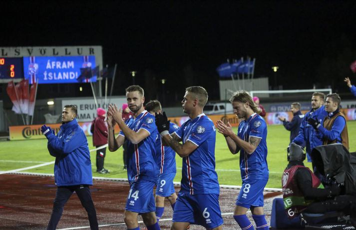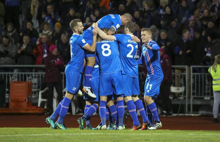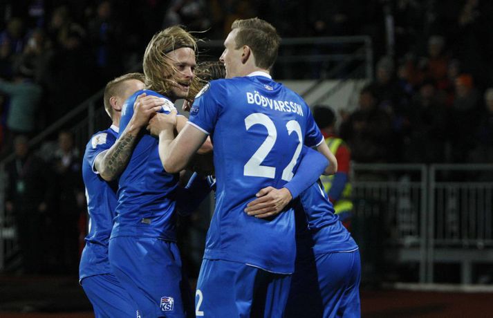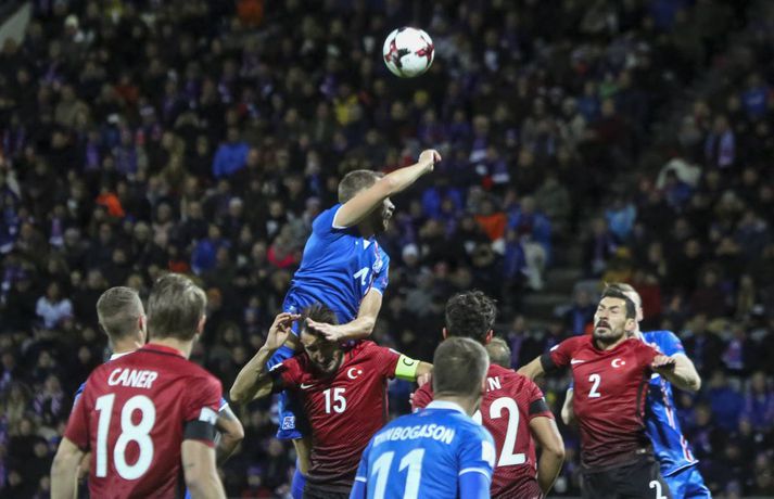 Ísland vann frábæran 2-0 sigur á Tyrklandi í undankeppni HM 2018 í kvöld. Íslensku strákarnir eru nú komnir með sjö stig í I-riðli, líkt og Króatar sem eru einmitt næstu andstæðingar Íslendinga. Ísland komst yfir á 42. mínútu þegar Theodór Elmar Bjarnason skaut boltanum í Ömer Toprak og inn. Tveimur mínútum síðar skoraði Alfreð Finnbogason með góðu skoti eftir skalla Kára Árnasonar inn fyrir tyrknesku vörnina. Fleiri urðu mörkin ekki og íslensku strákarnir fögnuðu góðum sigri.Ernir Eyjólfsson og Andri Marinó Karlsson, ljósmyndarar Fréttablaðsins og Vísis, voru á Laugardalsvellinum í kvöld og fönguðu stemmninguna eins og sjá má hér að ofan.vísir/andri marinóvísir/vilhelmvísir/ernirvísir/ernir