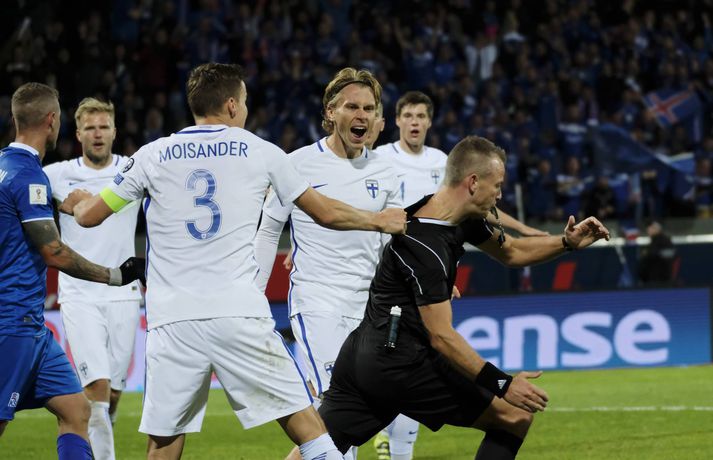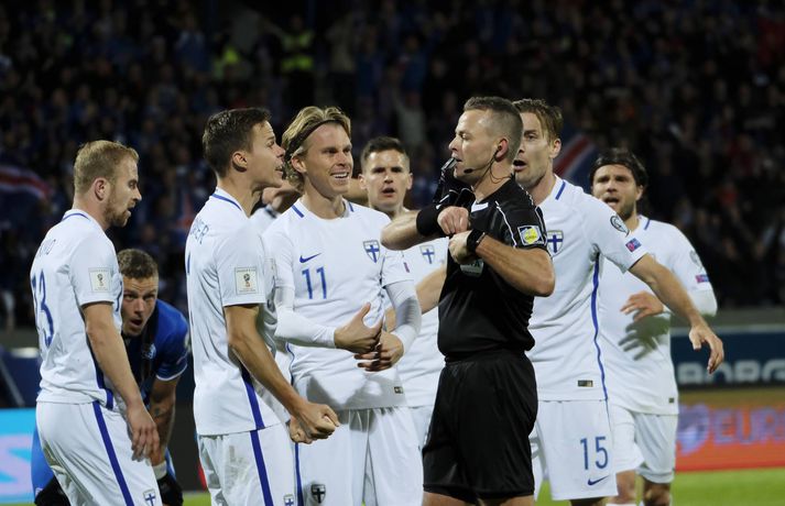 Fótbolti Íslenski boltinn HM 2018 í Rússlandi Tengdar fréttir Lukas Hradecky: Fjárans skandall Lukas Hradecky markvörður finnska landsliðsins í fótbolta var allt annað en ánægður með sigurmark Íslands á Laugardalsvelli í kvöld. 6. október 2016 21:37 Heimir: Alveg sama hvort markið hafi verið ólöglegt eða hvað Backe segir "Þetta er ofboðslegur léttir,“ sagði Heimir Hallgrímsson landsliðsþjálfari og hrósaði karakter sinna manna. 6. október 2016 21:30 Kári: Okkur finnst ekkert sérstaklega gaman að spila á móti sjálfum okkur Kári Árnason kom mikið við sögu gegn Finnum. 6. október 2016 20:58 Þjálfari Finna um sigurmark Íslendinga: „Þetta er hneyksli“ Hans Backe þjálfari finnska karlalandsliðsins í knattspyrnu var vægast sagt ósáttur við dómgæsluna í þriðja marki Íslands á Laugardalsvelli í kvöld. 6. október 2016 21:09 Hannes Þór og Jón Daði klárir í slaginn gegn Tyrklandi Markvörðurinn og framherjinn voru hvíldir í kvöld gegn Finnlandi vegna meiðsla. 6. október 2016 21:42 Mest lesið Bíll Shaquille O'Neal enn ófundinn Körfubolti Fluttu fréttir af snjónum í Reykjavík Fótbolti Búið að finna leiðina til að pirra og vinna Liverpool Enski boltinn Formaðurinn hjálpaði til við að moka völlinn Fótbolti Epicbet sýni handboltann í leyfisleysi: „Enda ólöglegar síður“ Handbolti Óskar Hrafn fer ekki fet Íslenski boltinn Sú leikjahæsta leggur skóna á hilluna og klárar læknanámið Fótbolti Sýknaður í alvarlegu ofbeldismáli Fótbolti Var með skattinn á hælunum þegar hann fór í veðmálabraskið Körfubolti Barnabarn Donalds Trump keppir á LPGA-mótaröðinni Golf Fleiri fréttir Segja spurningar vakna um stöðu Elísabetar Litu á hann sem risaeðlu en sjáið hvað er í tísku núna Formaðurinn hjálpaði til við að moka völlinn Formenn sambandanna hjálpuðu við að moka völlinn Real Madrid mun ekki refsa Vinícius Júnior Fluttu fréttir af snjónum í Reykjavík Sýknaður í alvarlegu ofbeldismáli Búið að finna leiðina til að pirra og vinna Liverpool Sú leikjahæsta leggur skóna á hilluna og klárar læknanámið Stuðningsmaður RB Leipzig lést á bikarleiknum í gærkvöldi Arteta óttast ekki að keppinautarnir steli undrabarninu frá honum FH bíður með að tilkynna nýjan þjálfara Óskar Hrafn fer ekki fet Spánn og Þýskaland mætast í úrslitum Anguissa hetja meistaranna Hákon Rafn hélt hreinu þegar Brentford flaug áfram Jón Dagur gulltryggði sigurinn með sínu fyrsta marki Leikið á Þróttaravelli á miðvikudag Vinícius Júnior íhugar að yfirgefa Real Madríd Kaupir sér tveggja milljarða króna hús Alexander Máni með fimm mörk í tveimur leikjum og Ísland áfram Birnir frá Akureyri í Garðabæ Klobbaði íslensku strákana og fór á flug á netmiðlum Hættir með Fram Landsliðskonur aðstoðuðu ökumenn í vanda Landsleiknum aflýst og framhaldið óljóst Segir að Slot verði að taka tvo leikmenn út úr Liverpool-liðinu Vonast til að komast í Kórinn: „Menn hafa aldrei séð annað eins“ „Alltaf gaman að fá nýjar raddir inn“ Gleðifréttir fyrir Argentínumenn: Messi vill spila á HM Sjá meira