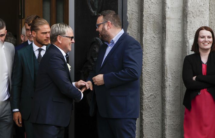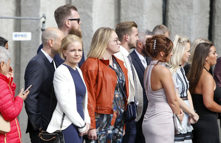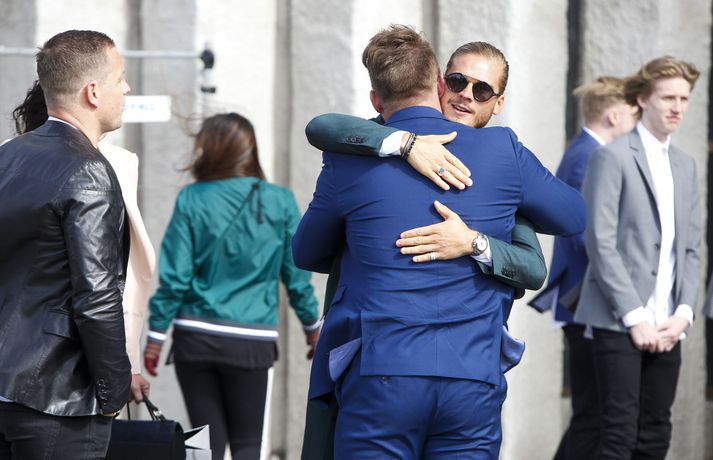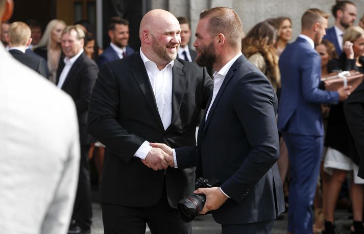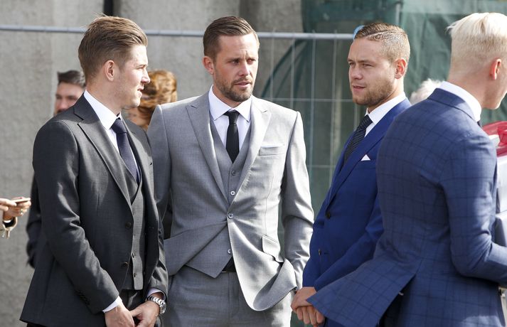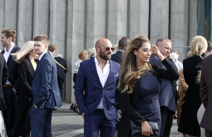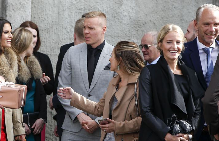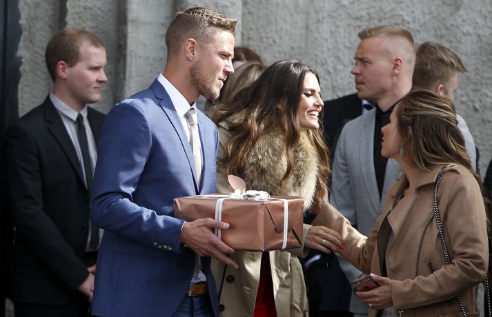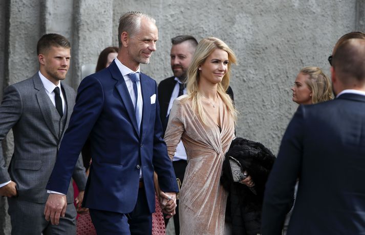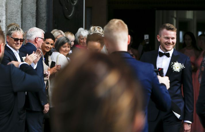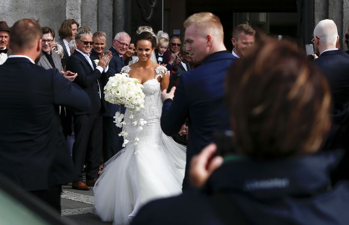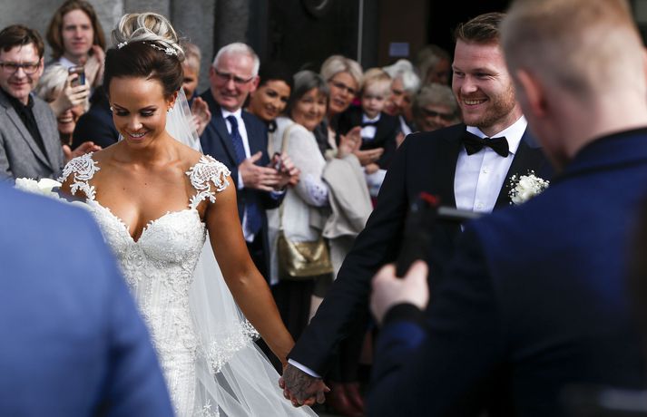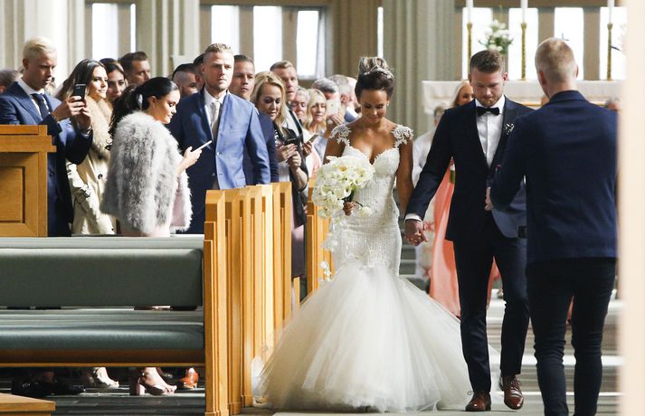 Kristbjörg Jónasdóttir, afrekskona í fitness, og Aron Einar Gunnarsson, fyrirliði íslenska landsliðsins í knattspyrnu, gengu í það heilaga síðdegis á laugardaginn. Athöfnin fór fram í Hallgrímskirkju. Hjónavígslunni verður að vonum ákaft fagnað að athöfninni lokinni í návist vina og ættingja en Kolfinna Von var veislustjóri á Korpúlfstöðum ásamt Rúrik. Kristbjörg og Aron Einar hafa verið í sambandi í rúm fjögur ár og eiga þau soninn Ólíver Breka. Fjölskyldan er búsett í Cardiff í Wales þar sem Aron Einar spilar með liði borgarinnar. Kristbjörg kemur frá Reykjavík en Aron Einar kemur frá Akureyri þar sem hann tók sín fyrstu skref í knattspyrnu. Jökull í Kaleo mætti gagngert frá Bandaríkjunum til að koma fram í brúðkaupinu og flaug síðan strax í einkaflugvél til Amsterdam að spila á næstu tónleikum. Fresta þurfti fjölmörgum tónleikum sveitarinnar vegna veikinda Jökuls á dögunum, en það stöðvar ekkert brúðkaupið hjá þessu ofurpari. Jón Jónsson, Friðrik Dór Jónsson, Sverrir Bergmann, Skytturnar og Emmsjé Gauti komu einnig fram.Myndir úr veislunni má sjá hér að neðan. Aron Einar greinir frá því á Instagramsíðu sinni (@arongunnarsson) að hjónin séu komin á Maldíveyjar í brúðkaupsferð en þar má sjá að ferðalagið hefur verið nokkuð langt. Þau gista á mjög fallegu hóteli og ná án efa að njóta sín í botn. Maldíveyjar er draumaáfangastaður allt árið um kring. Þar finnur þú maður silkimjúkar strendur, turkísbláa sjó og í raun allt sem hugurinn girnist. Hitastigið er um þrjátíu stig allt árum um kring. Maldíveyjar eru eyríki í Indlandshafi, suðsuðvestur af Indlandsskaga. Eyjarnar eru tvær samsíða raðir baugeyja í Lakshadweep-hafi um 700 kílómetrum suðvestan við Srí Lanka og 400 kílómetrum suðvestan við Indland. Þær eru 26 talsins með 1.196 kóraleyjum eins og segir á Wikipedia.Vísir/Andri Marinó