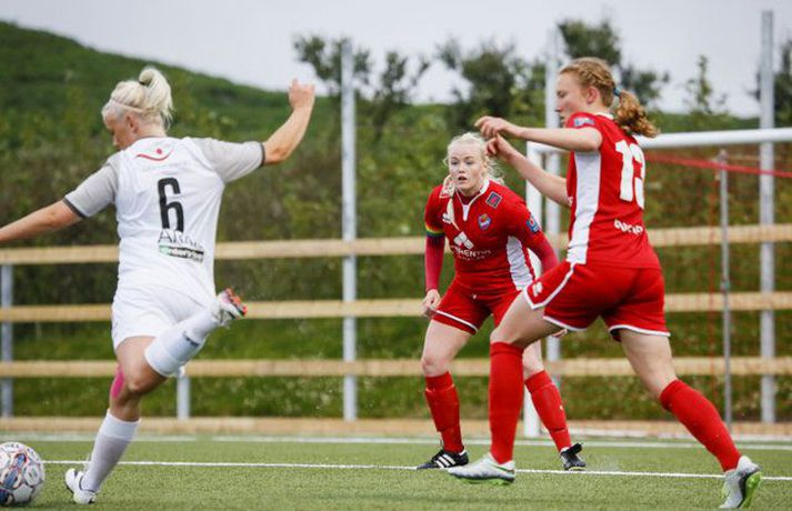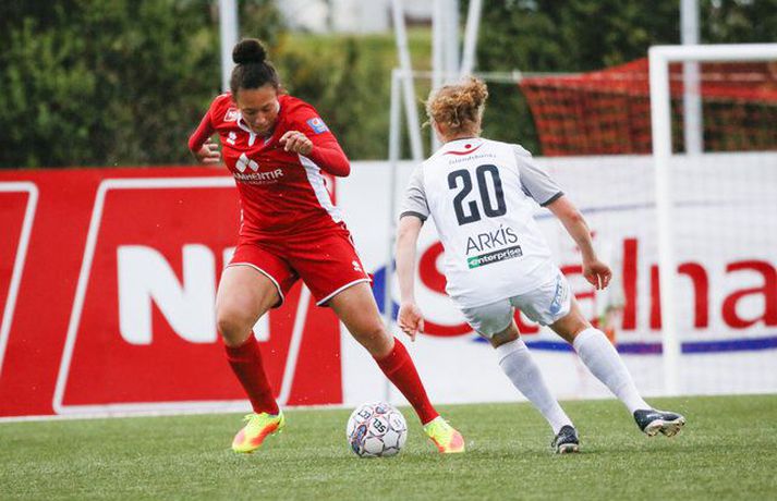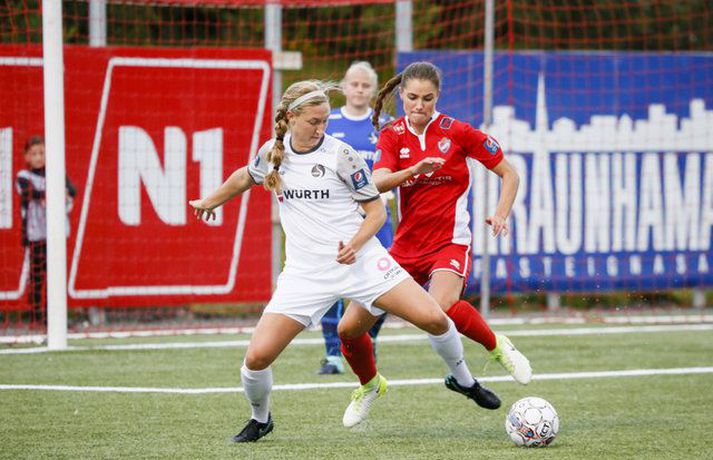 Fylkir felldi Hauka | Myndir Ingvi Þór Sæmundsson skrifar 30. ágúst 2017 21:15 Úr leiknum í kvöld. vísir/eyþór Fylkir hélt lífi í vonum sínum um að halda sæti sínu í Pepsi-deild kvenna með 1-2 sigri á Haukum í uppgjöri botnliðanna í kvöld. Haukar eru hins vegar fallnir en þeir hafa aðeins fengið eitt stig í 15 deildarleikjum í sumar. Marjani Hing-Glover kom Haukum yfir á 59. mínútu en aðeins þremur mínútum síðar jafnaði Kaitlyn Johnson metin fyrir Fylki. Hún hefur skorað fjögur mörk í fimm leikjum fyrir Árbæjarliðið. Maruschka Waldus skoraði svo sigurmark Fylkis tveimur mínútum fyrir leikslok þegar hún skallaði hornspyrnu Berglindar Rósar Ágústsdóttur í netið. Lokatölur 1-2, Fylki í vil en þetta var fyrsti sigur liðsins undir stjórn Hermanns Hreiðarssonar. Fylkir er nú með átta stig í 9. sæti deildarinnar, fjórum stigum á eftir KR sem er í 8. sætinu. Þessi lið mætast einmitt í næstu umferð þar sem Fylkiskonur verða einfaldlega að vinna. Upplýsingar um úrslit og markaskorara eru fengnar frá Fótbolta.net.Eyþór Árnason, ljósmyndari Fréttablaðsins og Vísis, var á Ásvöllum í kvöld og tók myndirnar hér að neðan. Pepsi Max-deild kvenna Tengdar fréttir Úlfur: Stoltur af Valsliðinu í dag „Ég er mjög sáttur að koma hingað á Grindavíkurvöll og spila mjög flottan fótboltaleik. Mér fannst við gera allt rétt í dag, höldum hreinu og skorum þrjú góð mörk,“ sagði Úlfur Blandon þjálfari Valskvenna eftir öruggan sigur gegn Grindavík í Pepsi-deild kvenna í kvöld. 30. ágúst 2017 20:26 Blikar upp í 2. sætið eftir þriðja sigurinn í röð Breiðablik lyfti sér upp í 2. sæti Pepsi-deildar kvenna með 0-2 útisigri á KR í kvöld. 30. ágúst 2017 20:13 Umfjöllun og viðtöl: Grindavík - Valur 0-3 | Valur sótti þrjú stig í Grindavík Valur vann þægilegan 3-0 sigur á Grindavík í 15.umferð Pepsi-deildar kvenna í Grindavík í kvöld. Með sigrinum heldur Valsliðið sig í baráttunni með toppliðunum sem elta Þór/KA í toppsætinu. 30. ágúst 2017 21:15 Mest lesið Arsenal jafnaði rúmlega aldargamalt félagsmet Fótbolti Segir Amorim ekki geta gert kraftaverk Fótbolti Liverpool vann risaslaginn Fótbolti Jafnteflin ríkjandi í Meistaradeildinni í kvöld Fótbolti Keflavíkursigur í kaflaskiptum leik Körfubolti Uppgjörið: Njarðvík - Hamar/Þór 88-61 | Auðsóttur sigur Njarðvíkinga Körfubolti Sneypuför danskra til Lundúna Fótbolti Meistararnir lágu á heimavelli Fótbolti Lýsir eftir leiðtoga íslenska landsliðsins Handbolti Ísland lenti í algjörum martraðarriðli Fótbolti Fleiri fréttir Fram líka fljótt að finna nýja ást „Í ástarsorg er gott að finna sér nýja ást sem fyrst“ Fanndís hefur ekkert heyrt frá Val og íhugar að hætta „Það verður hundleiðinlegt að spila við Val“ Hermann tekinn við Val Fóru nýja leið í ár og auglýstu eftir þjálfara: Tommy Nielsen ráðinn Pablo og Óskar Örn inn í þjálfarateymi Hauka FH-ingar kveðja Kjartan Henry Tölur úr Bestu: Bjartur Bjarmi fór í flestar tæklingar af öllum Gísli semur við Skagamenn Óskar Smári tekur við Stjörnunni Bretinn ráðinn tæknilegur ráðgjafi hjá Val Fram þvertekur fyrir metnaðarleysi og leitar að nýjum þjálfurum Tölur úr Bestu: Hallgrímur Mar bjó til langflest færi „Mjög sáttur með samninginn“ „Hefði séð eftir því alla ævi“ Magnús Már í viðræðum við HK Uppgjörið: Ísland - Norður-Írland 3-0 | Áfram hluti af elítunni Tölur úr Bestu 2025: Klúðraði langflestum dauðafærum í sumar FH bíður með að tilkynna nýjan þjálfara Óskar Hrafn fer ekki fet Birnir frá Akureyri í Garðabæ Hættir með Fram Heimir kynntur til leiks í Árbænum Túfa rekinn frá Val Leyndarmáli ljóstrað upp þegar Heimir og Björn kvöddu Leikmenn kusu Patrick og Guðmund Sjáðu bananabombu Antons Loga og önnur síðustu mörk tímabilsins Uppgjörið: Stjarnan - Breiðablik 2-3 | Stjarnan í Evrópu þrátt fyrir tap „Held að ég geti ekki gert mikið meira“ Sjá meira