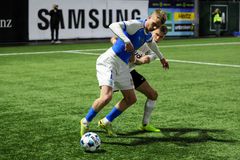 Knattspyrnusamband Íslands og Errea Sport kynntu í dag nýjan búning íslenska knattspyrnulandsliðsins en það var gert í dag með viðhöfn í höfuðstöðvum Knattspyrnusambands Íslands í Laugardalnum. Það þarf ekki að koma neinum á óvart að blái liturinn er allsráðandi í nýjum búningi íslenska landsliðsins. Nú er rauði liturinn í ermunum og það er engin rönd niður eftir treyjunni. Myndband með nýju treyjunni er hér fyrir neðan.The new kit is here #fyririsland#TeamIcelandpic.twitter.com/kFaq9mOrga — Knattspyrnusambandið (@footballiceland) March 15, 2018 „Við erum búin að bíða eftir þessu ansi lengi,“ sagði Guðni Bergsson, formaður KSÍ, í ræðu á Melvellinum eins og svæðið heitir undir aðalstúkunni á Laugardalsvellinum. „Ég er viss um að þessi búningur muni hreyfa við okkur og skapa mikla umræðu,“ sagði Guðni um það sem Errea kynnti sem næsta sameiningartákn íslensku þjóðarinnar. Guðni Th. Jóhannesson, forseti Íslands, fékk afhenta fyrstu treyjuna. Búningurinn sem íslenska liðið spilaði í á EM í Frakklandi 2016 og hefur haldið áfram að spila í síðan þá var með einni áberandi hvítri og rauðri rönd í gegnum merki KSÍ og niður allan búninginn að framan. Íslenska liðið er á leiðinni í æfingaferð til Bandaríkjanna þar sem liðið mætir bæði Mexíkó og Perú í vináttulandsleikjum í New Jersey og San Francicso. Í ferðinni verður einnig unnið allskonar kynningarefni á íslenska landsliðinu fyrir komandi sumar. Nýr búningur þurfti því að vera klár fyrir Bandaríkjaferðina og hann var kynntur með viðhöfn og á beinni á Vísi í dag. Nýi búningurinn.KSÍÍsland er á leiðinni á sitt fyrsta heimsmeistaramót í Rússlandi í sumar þar sem fyrsti leikurinn verður á móti Lionel Messi og félögum í argentínska landsliðinu 16. júní næskomandi. Íslensku strákarnir mæta einnig Nígeríu og Króatíu í riðlinum og vonandi verða leikirnir fleiri en þrír. Ísland setur heimsmet í fyrsta leik sem fámennasta þjóð sem hefur átt lið í úrslitakeppnni HM í fótbolta. Ísland bætir þar met Trínidad og Tóbagó. Þar búa 1,3 milljónir manna en aðeins tæplega 340 þúsund búa á Íslandi. Hér fyrir neðan má sjá hvernig íslenski landsliðsbúningurinn hefur þróast frá fyrsta landsleik Íslands sem var á móti Danmörku á Melavellinumn 17. júlí 1946.Our kit launches tomorrow Here is a look at the history of our kit. March 15 15:15 PM (GMT)#fyririsland #TeamIceland pic.twitter.com/36rgN8toJG — Knattspyrnusambandið (@footballiceland) March 14, 2018