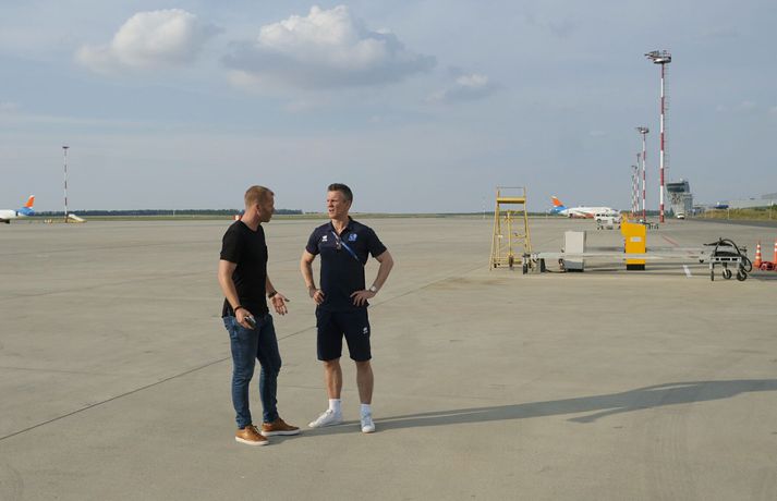 Guðni og Eiður spjölluðu er strákarnir lentu í Rostov Anton Ingi Leifsson skrifar 24. júní 2018 15:55 Guðni og Eiður Smári á spjallinu. vísir/vilhelm Íslenska landsliðið í knattspyrnu er lent í Rostov þar sem liðið leikur gegn Króatíu í síðatsa leik riðlakeppninnar á þriðjudag. Strákarnir lentu á flugvellinum í Rostov klukkan sex að staðartíma en rúta íslenska liðsins beið við flugvélina er strákarnir lentu. Við tekur klukkutíma akstur inn í borgina á hótelið þar sem strákarnir okkar dvelja fyrir leikinn mikilvæga gegn Króatíu á þriðjudaginn. Eiður Smári Guðjohnsen var með í flugvélinni en hann er einn sparkspekinga RÚV á meðan mótinu stendur. Hann spjallaði við formann KSÍ, Guðna Bergsson, áður en haldið var upp í rútu í Rostov. HM 2018 í Rússlandi Tengdar fréttir HM í dag: Meint lyfjamisnotkun Rússa og ferðalag til Rostov Hvíldin er stutt á milli leikja tvö og þrjú því það er strax komið að ferðadegi hjá karlalandsliðinu. 24. júní 2018 09:00 Svona var blaðamannafundur Emils og Kára í Kabardinka Það er ferðadagur hjá íslenska karlalandsliðinu í knattspyrnu sem heldur síðdegis til Rostov þar sem liðið mætir Króatíu í síðasta leik sínum í riðlakeppni HM á þriðjudaginn. 24. júní 2018 07:45 Truflar Króatíu ekkert að hvíla nokkra menn Kári Árnason segir króatíska liðið svo gott að það getur alveg leyft sér að hvíla menn. 24. júní 2018 08:32 Sumarmessan: Átti Albert að koma inn á? Dynamó þrasið var að á sínum stað í Sumarmessunni eftir leik Íslands og Nígeríu. 24. júní 2018 06:00 Mest lesið Bíll Shaquille O'Neal enn ófundinn Körfubolti Fluttu fréttir af snjónum í Reykjavík Fótbolti Formaðurinn hjálpaði til við að moka völlinn Fótbolti Búið að finna leiðina til að pirra og vinna Liverpool Enski boltinn Epicbet sýni handboltann í leyfisleysi: „Enda ólöglegar síður“ Handbolti Tölur úr Bestu 2025: Klúðraði langflestum dauðafærum í sumar Íslenski boltinn Segja spurningar vakna um stöðu Elísabetar Fótbolti Óskar Hrafn fer ekki fet Íslenski boltinn Sú leikjahæsta leggur skóna á hilluna og klárar læknanámið Fótbolti Litu á hann sem risaeðlu en sjáið hvað er í tísku núna Enski boltinn Fleiri fréttir Þorsteinn breytir engu á milli leikja Snjóbræðslukerfi Þróttar kom KSÍ til bjargar Tölur úr Bestu 2025: Klúðraði langflestum dauðafærum í sumar Segja spurningar vakna um stöðu Elísabetar Litu á hann sem risaeðlu en sjáið hvað er í tísku núna Formaðurinn hjálpaði til við að moka völlinn Formenn sambandanna hjálpuðu við að moka völlinn Real Madrid mun ekki refsa Vinícius Júnior Fluttu fréttir af snjónum í Reykjavík Sýknaður í alvarlegu ofbeldismáli Búið að finna leiðina til að pirra og vinna Liverpool Sú leikjahæsta leggur skóna á hilluna og klárar læknanámið Stuðningsmaður RB Leipzig lést á bikarleiknum í gærkvöldi Arteta óttast ekki að keppinautarnir steli undrabarninu frá honum FH bíður með að tilkynna nýjan þjálfara Óskar Hrafn fer ekki fet Spánn og Þýskaland mætast í úrslitum Anguissa hetja meistaranna Hákon Rafn hélt hreinu þegar Brentford flaug áfram Jón Dagur gulltryggði sigurinn með sínu fyrsta marki Leikið á Þróttaravelli á miðvikudag Vinícius Júnior íhugar að yfirgefa Real Madríd Kaupir sér tveggja milljarða króna hús Alexander Máni með fimm mörk í tveimur leikjum og Ísland áfram Birnir frá Akureyri í Garðabæ Klobbaði íslensku strákana og fór á flug á netmiðlum Hættir með Fram Landsliðskonur aðstoðuðu ökumenn í vanda Landsleiknum aflýst og framhaldið óljóst Segir að Slot verði að taka tvo leikmenn út úr Liverpool-liðinu Sjá meira