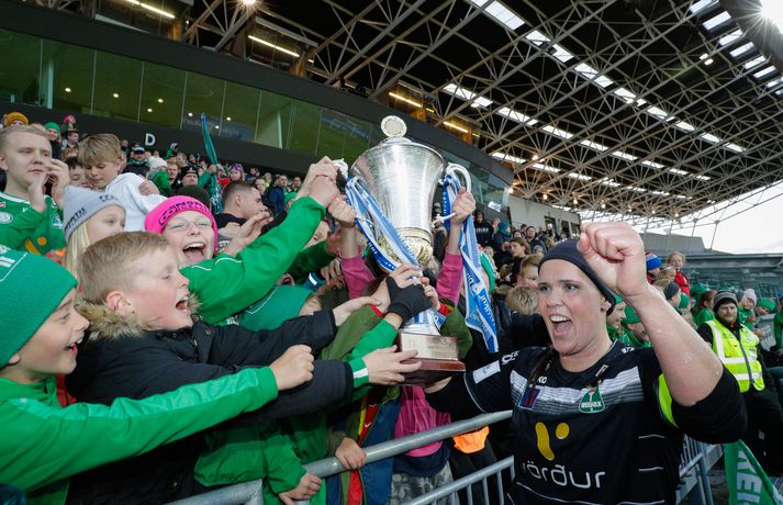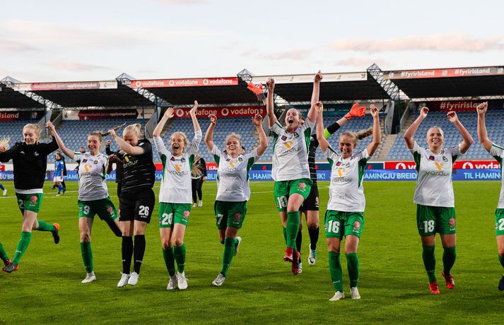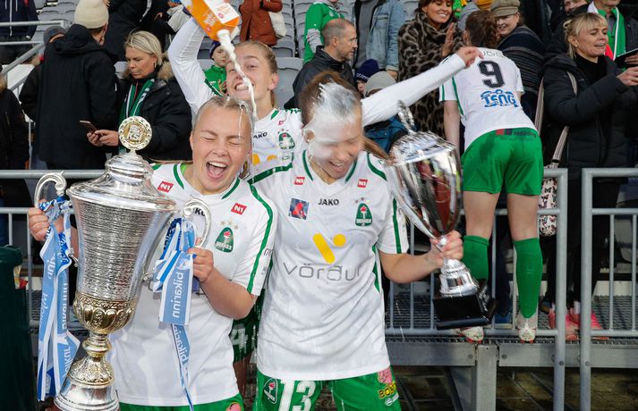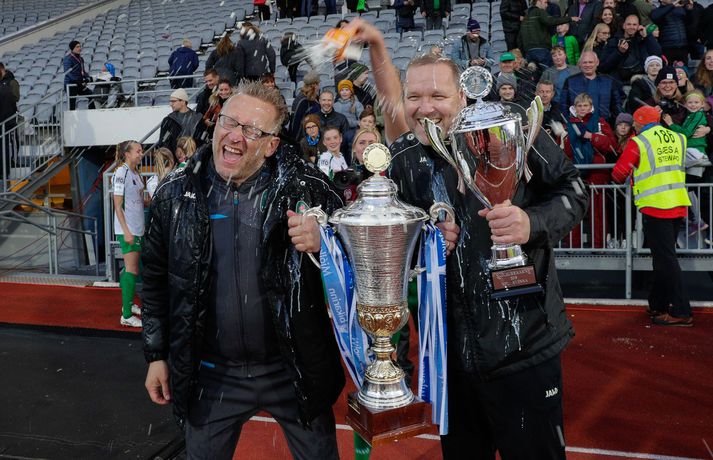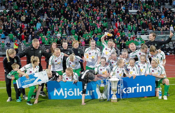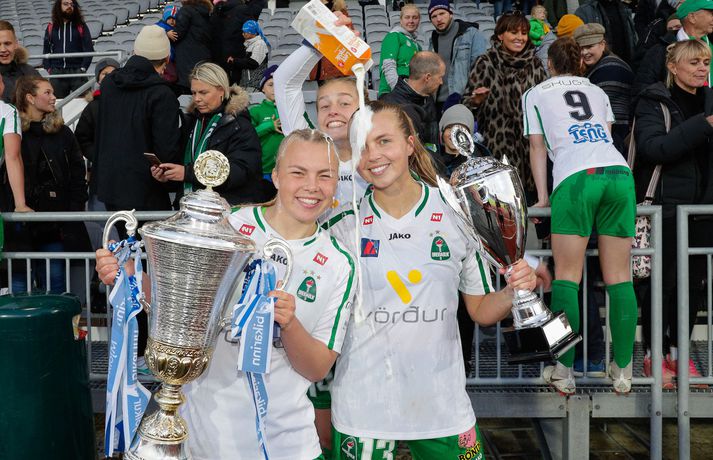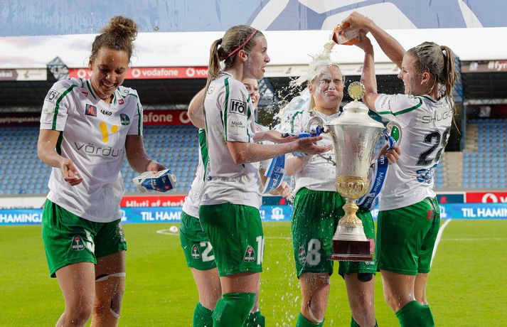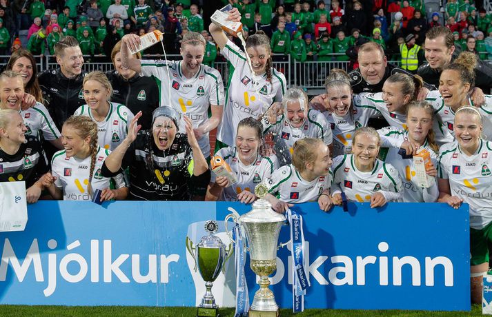Breiðablik er bikarmeistari í fótbolta eftir 2-1 sigur á Stjörnunni í úrslitaleiknum á Laugardalsvelli í kvöld. Berglind Björg Þorvaldsdóttir og Guðrún Arnardóttir gerðu mörk Breiðabliks í fyrri hálfleik áður en Telma Hjaltalín Þrastardóttir minnkaði metin fyrir Stjörnuna í lokin. Blikar eru því sigurvegarar Mjólkurbikars kvenna í fótbolta. Vilhelm Gunnarsson, ljósmyndari Vísis, var í Laugardalnum í kvöld og tók þessar myndir af fögnuðinum.