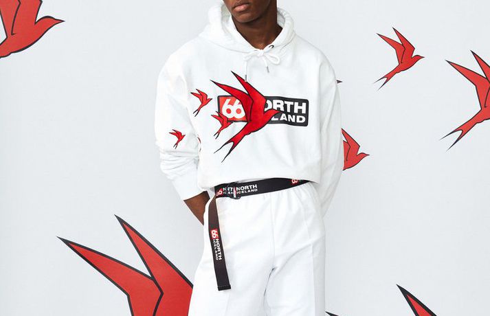 Bergur Guðnason kemur úr mikilli íþróttafjölskyldu, faðir hans er fótboltakempan Guðni Bergsson og var það alltaf draumur Bergs að fara í atvinnumennsku. Slæm meiðsli breyttu því og í kjölfar þess að læknar tjáðu honum að hann gæti ekki spilað lengur, stóð hann frammi fyrir því að finna sér nýjan draum.Tók U-beygju um tvítugt ,,Ég var á fullu í fótboltanum til tvítugs þegar ég lendi í þessum meiðslum. Mitt plan var alltaf að verða afreksmaður í íþróttum. Þegar þau plön breyttust eftir meiðslin varð ég að finna eitthvað annað. Ég hef alltaf haft mikinn áhuga á tísku og líka því hvernig föt klæða fólk. Mjög ungur var ég farinn að velta fyrir mér formunum og hvernig litir fara saman,“ segir Bergur. Hann segir að sér hafi alltaf þótt gaman að ögra sjálfum sér með því að vera í skemmtilega öðruvísi fötum þegar hann var unglingur. Stuttu eftir menntaskóla fékk Bergur tækifæri til að fá smá reynslu hjá fatahönnuðinum Guðmundi Jörundssyni, sem hann segir hafa verið dýrmæta. Hann ákvað í kjölfarið að slá til og sótti um í fatahönnun í Listaháskóla Íslands. „Ég gerði möppu og komst inn í skólann. Þar var ég í þrjú ár og útskrifaðist með eina af hæstu einkunnunum. Ég viðurkenni samt að ég var ekki færastur í tæknilegum áföngum og féll nokkrum sinnum í þeim. Ég var ekkert flinkastur þarna, alls ekki.“Starfaði náið með heimsþekktum hönnuði Eftir útskrift langaði Berg út og hann lagði mikið á sig til að láta þann draum rætast. Hann komst á samning í tískuhúsi í París sem heitir Haider Ackermann, en merkið er í miklu uppáhaldi hjá stjörnum á borð við Kanye West og Tildu Swinton. „Ég var hjá þeim í átta mánuði og vann að tveimur línum, þar sem ég aðstoðaði Haider sjálfan. Þetta var mjög mikill lærdómur, ég lærði svo ótrúlega margt af því að fá að vinna náið með honum og hans teymi. Eftir að samningnum mínum lauk þar fór ég að vinna hjá Acne Studios, í svipað langan tíma.“Berg til þess að brjóta lógóið þekkta aðeins upp með því að til dæmis taka tvær peysur og sameina þær þannig að þær passi samt ekki alveg saman.Hjá Acne fékk Bergur ríkari reynslu í gerð kvenfatnaðar, en í skólanum og hjá Haider var hann fyrst og fremst í herrafatnaði. Eftir að samningurinn hjá Acne rann út var Bergur með alla anga úti til að komast að hjá öðru tískuhúsi í París. „Það er alveg gríðarleg samkeppni í þessum bransa, mörg þúsund ungir hönnuðir sem vilja allir komast á samning hjá sömu fimmtán tískuhúsunum sem ráða kannski bara einn nýjan hönnuð inn. Við kærastan mín, Margrét Rajani, komumst að því að við ættum von á barni. Í kjölfarið ákváðum við að kannski væri gott að flytja aðeins heim, enda álagið gífurlega mikið úti,“ segir Bergur. Hann segir þetta allt þó hafa verið mjög gaman, mikill lærdómur og reynslan honum einstaklega dýrmæt.Lán í óláni að fá ekki vinnu hjá Louis Vuitton „Ég hafði í gegnum þetta alltaf verið í samskiptum við Völu Melstað, yfirhönnuð hjá 66°Norður, ég kynntist henni eftir útskrift. Ég sagði henni að við værum að hugsa um að koma heim. Í millitíðinni er ég fenginn í viðtal til tískuhússins Louis Vuitton, en það var mjög svekkjandi að komast ekki þar inn. Einmitt þá er Vala stödd í París og við ákveðum að hittast og ræða saman.“ Eftir að Bergur og Margrét fluttu heim hafði 66°Norður samband með samstarf í huga, sem Bergur var mjög til í. Hann segir línuna örlítið óhefðbundnari en hinn klassíska 66°Norður fatnað. „Þetta er meira út í svokallað „streetwear“. Fyrirtækið er auðvitað með frábæran útivistarfatnað sem flestir Íslendingar náttúrulega þekkja. Þetta höfðar eflaust meira til yngri kynslóðarinnar og er í mjög takmörkuðu upplagi.“ Engar tvær flíkur eru alveg eins þótt þær fylgi ákveðnu þema, útliti eða stíl en grafíkin er aldrei alveg sú sama. „Það var svo líka einstakur heiður að fá að vinna með þeim og ég er þeim mjög þakklátur fyrir að hafa gefið mér það tækifæri.“ Samstarfslína Bergs og 66°Norður fer í sölu í dag klukkan 17.00 í verslun merkisins á Laugavegi.
