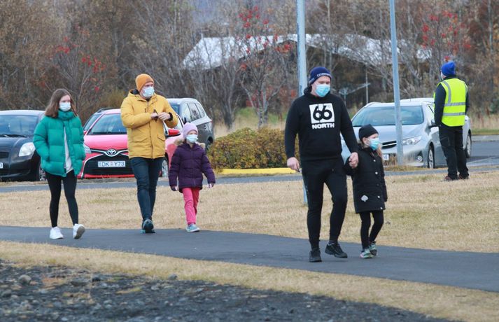 Streyma í sýnatöku í Sunnulækjaskóla Kolbeinn Tumi Daðason skrifar 8. október 2020 10:24 Foreldrar og börn voru með grímur við komuna eins og óskað var eftir. Vísir/Magnús Hlynur Börn úr Sunnulækjaskóla á Selfossi streyma nú í sýnatöku eftir að starfsmaður skólans og börn greindust með Covid-19 á dögunum. Sýnataka fer fram í íþróttahúsi skólans. Nemendur í 1. bekk mættu klukkan hálf níu í morgun en nemendur í sjö árgöngum eru skimaðir auk kennara og starfsfólks. Um er að ræða 550 börn og um fimmtíu fullorðna. Skimun mun standa fram eftir degi. Mælst var til þess að aðeins eitt forledri fylgdi hverju barni og sú undanþága gerð að foreldrar tveggja barna mættu mæta með þau á sama tíma. Grímuskylda er við skimun og fylgdu nemendur og foreldrar þeim tilmælum í morgun eins og sjá má á myndunum að neðan sem Magnús Hlynur Hreiðarsson, fréttamaður okkar á Selfossi, tók. Þá var lögð áhersla á að allir sem væru með einkenni ættu ekki að mæta í þessa sýnatöku heldur hringja á Heilbrigðisstofnun Suðurlands, fá samtal við hjúkrunarfræðing sem bókar einkennasýnatöku. Vísir/Magnús HlynurVísir/Magnús HlynurVísir/Magnús HlynurVísir/Magnús HlynurVísir/Magnús HlynurVísir/Magnús Hlynur Skóla - og menntamál Faraldur kórónuveiru (COVID-19) Árborg Tengdar fréttir Selfyssingar bera smitberann á höndum sér Auður Tinna Hlynsdóttir, starfsmaður á sérdeild Sunnulækjarskóla á Selfossi, segist ekki hafa mætt neinu nema samkennd og umhyggju þrátt fyrir að hafa sett heilt bæjarfélag á hliðina. 7. október 2020 15:16 550 nemendur og 50 starfsmenn í sóttkví á Selfossi 550 nemendur og 50 starfsmenn Sunnulækjarskóla á Selfossi, eru nú komnir í sóttkví. 3. október 2020 20:07 Sjö bekkir í Sunnulækjarskóla á Selfossi komnir í sóttkví Stór hluti nemenda Sunnulækjarskóla á Selfossi er komin í sóttkví vegna kórónuveirunnar. Tilkynning um þetta barst frá skólastjóra í dag til foreldra barna í skólanum. 3. október 2020 17:26 Mest lesið Hálka á höfuðborgarsvæðinu og Hellisheiði Innlent Ástæða fyrir því að genaumræðan hafi ekki náð mikilli útbreiðslu Innlent Íslensk stúlka í klóm 764 hvött til sjálfsskaða og ofbeldis Innlent Lögreglumenn svekktir að sjá hversu margir hundsuðu fyrirmæli í gær Innlent Veðurvaktin: Allt á kafi í snjó á metdegi Veður Karlmaður lést í Bláa lóninu Innlent Snjómokstur í fullum gangi en verkið er viðamikið Innlent Rak nefndina sem átti að taka fyrir viðhafnarsalinn og sigurbogann Erlent Hlýni á föstudag og snjórinn geti horfið í næstu viku Veður Ráðgjafinn ráðinn tveimur dögum eftir að grennslast var fyrir um málið Innlent Fleiri fréttir Fjárútlát ríkislögreglustjóra fari afar illa í lögreglumenn Lögreglumenn svekktir að sjá hversu margir hundsuðu fyrirmæli í gær Skjálfti 3,2 að stærð í Mýrdalsjökli Snjómokstur í fullum gangi en verkið er viðamikið Íslensk stúlka í klóm 764 hvött til sjálfsskaða og ofbeldis Hálka á höfuðborgarsvæðinu og Hellisheiði Ástæða fyrir því að genaumræðan hafi ekki náð mikilli útbreiðslu Ráðgjafinn ráðinn tveimur dögum eftir að grennslast var fyrir um málið „Alvöru“ jólasveinn gisti á Hótel Rangá Vesturbæjarlaug opnuð enn eina ferðina eftir viðgerðir Verklagi ábótavant og krefur ríkislögreglustjóra skýringa Mæla með því að farþegar reiði sig ekki á tímaáætlanir Snjókoman mikla, ábótavant verklag ríkislögreglustjóra og jólasveinamót Karlmaður lést í Bláa lóninu Biðu í fjóra tíma úti á braut og aðra fjóra við farangursbeltin Kærðu umdeildar framkvæmdir allt of seint Skellt í lás í sundlaugum borgarinnar vegna veðurs Reglur brotnar og þjónusta sem bjóða ætti út Þarf að borga bætur þrátt fyrir breytingar á hlaupahjólinu Hvatt til varúðar vegna snjóflóðahættu á suðvesturhorninu Meiri kvika en í síðasta gosi Eldur í blokk við Ljósheima Flugmaðurinn sem fórst millilenti oft í Reykjavík Halla leiðir krabbameinsráð ráðherra Snjókomumet og umferðaröngþveiti Segir sameiginlegum gildum Norðurlanda ógnað Fjölmargir farþegar fastir í flugvélum á Keflavíkurflugvelli Ungur Miðflokksmaður gengst við rasisma og segir af sér Sturlað ástand og United vettlingar prjónaðir í bílnum Mesta snjódýpt í Reykjavík sem mælst hefur í október Sjá meira