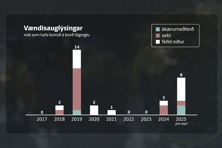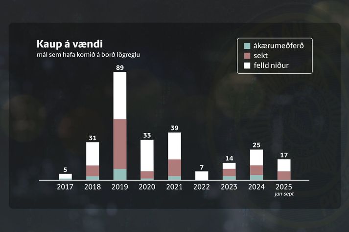 Samkvæmt tölum frá ríkislögreglustjóra hafa sautján mál verið til rannsóknar hjá lögreglu vegna gruns um vændiskaup á þessu ári. Meira en helmingur mála eru látinn niður falla og flestum þeim sem standa eftir lýkur með sekt. Tölur um mál sem hafa verið til ransóknar vegna kaupa á vændi. Eins og sjá má fellur meirihluti mála niður.Vísir Talskona Stígamóta segir að ljóst að vændi þrífist hér á landi og fjöldi mála fari eftir áhuga lögreglu hverju sinni. „Það sem hefur verið landlægt í þessum brotaflokki að þeir sem eru brotlegir, kaupendur samkvæmt íslenskum lögum, það hefur alltaf verið slegin skjaldborg utan um þá, þeir hafa aldrei verið nafngreindir, það hafa verið lokuð réttarhöld og svo framvegis,“ sagði Drífa Snædal í viðtali í kvöldfréttum Sýnar. „Það eru alltaf einhverjir tugir á ári sem eru hjá Stígamótum sem brotaþolar vændis og við rekum sjálfshjálparhóp og framhaldssjálfshjálparhópa því við lítum á þetta sem mjög sérstakan brotaflokk. Það er mjög erfitt og mjög „trámatíserandi“ að hafa verið í vændi og erfitt að komast út úr því.“ Ekkert jafnrétti fyrr en vændi sé upprætt Drífa segir ljóst að taka þurfi málin hörðum höndum og segir það gegn anda okkar réttarkerfis að þeir sem séu brotlegir þurfi ekki að sæta afleiðingum. „Það er lág sekt þannig að það má segja að það sé slegið a puttana á þeim sem gerast brotlegir í vændi og ekki tekið nógu alvarlega,“ segir Drífa og bætir við að það verði ekki jafnrétti fyrr en vændi sé upprætt. „Það er ekki samfélagslega ásættanlegt að við leyfum því að gerast að hér sé starfandi vændismarkaður þar sem líkamar kvenna ganga kaupum og sölum. Það þarf að fara að taka þetta hörðum höndum. Segir kærur vegna auglýsinga um vændi ekki í anda laganna Á vefsíðunni City of Love skipta auglýsingar þar sem vændi er auglýst á Íslandi hundruðum. Þar eru meðal annars nefndir staðir í Reykjavík þar sem líklegt er talið að auðvelt sé að nálgast þjónustu vændiskvenna en auglýsingum á síðunni er skipt eftir sveitarfélögum. Samtals voru þrjú mál rannsökuð vegna vændisauglýsinga árin 2020-2023 en á þessa ári hafa átta mál verið tekin til rannsóknar og ákært verið í tveimur þeirra.Vísir Átta mál vegna auglýsinga um vændi hafa verið til rannsóknar á þessu ári. Málunum hefur fjölgað frá síðustu árum en á árunum 2020-2023 voru málin þrjú og lauk engu þeirra með sekt eða ákæru. Árið 2009 var tekin upp hin svokallaða sænska leið hér á landi sem gerir vændiskaup ólögleg. Þá er einnig ölöglegt er að auglýsa vændi þó sala þess sé lögleg. „Það að ákæra konur í vændi fyrir að auglýsa vændi stríðir algerlega gegn anda þeirra laga sem við erum með núna,“ segir Drífa. Skora á dómsmálaráðherra og gagnrýna lögreglustjóra Í bréfi til dómsmálaráðherra skora fjölmörg samtök á ráðherra að verja vændislöggjöfina og þá vernd sem henni er ætlað að veita þolendum. Þar kemur fram að í lok september hafi tveimur konum verið birt ákæra fyrir að auglýsa vændi. Þetta sé í annað sinn sem lögreglustjórinn á Norðurlandi Eystra ákæri konur fyrir slíkt og er dómsmálaráðherra hvattur til að gera lögreglustjóranum ljóst að framferði embættisins ógni öryggi kvenna og annarra í vændi. Drífa segir málefnið sérstaklega mikilvægt í aðdraganda kvennafrídagsins. „Það er ágætt að minna sig á það í aðdraganda kvennafrídagsins að barátta kvenna hefur alltaf verið að líkamar kvenna eru ekki til sölu, eru ekki söluvara og ekki neysluvara fyrir karlmenn. Vændislöggjöfin sem við búum við í dag er afsprengi af þessari hugmyndafræði og þessari baráttu.“ „Það verður ekkert jafnrétti á íslandi fyrr en við hættum að láta líkama kvenna ganga kaupum og sölum fyrir karla,“ bætir Drífa við að lokum.