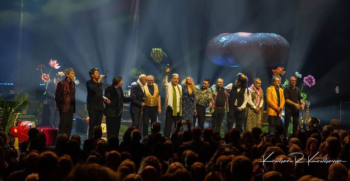 Sigurður Bjóla átti nýverið 73 ára afmæli og er goðsögn í tónlistarheiminum rétt eins og Stuðmenn. Hann var hvað þekktastur sem söngvari og lagahöfundur í sveitinni Spilverk þjóðanna. Þríeykið Egill, Valgeir og Siggi höfðu ekki komið saman með Stuðmönnum í 49 ár og var því um sögulega endurfundi að ræða. Stuðmenn fengu nokkra af vinsælustu listamönnum landsins með sér í lið og má þar nefna Bríeti, Friðrik Dór, Magna, Mugison og Sölku Sól. Kristinn R. Kristinsson ljósmyndari var á svæðinu og náði þessum fallegu augnablikum: Dýrin í Týrol!Kristinn R. Kristinsson Þórður Árnason glæsilegur í glæsilegum jakka.Kristinn R. Kristinsson Friðrik Dór var í stuði.Kristinn R. Kristinsson Líf og fjör á sviðinu.Kristinn R. Kristinsson Magni, Egill og Siggi Bjóla flottir.Kristinn R. Kristinsson Salka Sól sæta í bláu.Kristinn R. Kristinsson Frikki Dór í fíling!Kristinn R. Kristinsson Jakob Smári spilaði á bassa, Ásgeir á trommur, Guðmundur Pétursson á gítar og Þórir Úlfarsson á píanóKristinn R. Kristinsson Sviðsmyndin var algjört listaverk.Kristinn R. Kristinsson Jakob Frímann, Sigurður Bjóla og Bríet.Kristinn R. Kristinsson Ásgeir Óskarsson glæsilegur á trommunum.Kristinn R. Kristinsson Salka Sól negldi nóturnar.Kristinn R. Kristinsson Salka, Frikki og Ásgeir í mega stuði.Kristinn R. Kristinsson Glæsilegur hópur.Kristinn R. Kristinsson Bríet sló í gegn.Kristinn R. Kristinsson Innlifun upp á tíu!Kristinn R. Kristinsson Jakob Frímann.Kristinn R. Kristinsson Guðmundur Pétursson lék listir sínar. Kristinn R. Kristinsson Siggi Bjóla, Valgeir Guðjóns og Salka Sól trylltu lýðinn.Kristinn R. Kristinsson