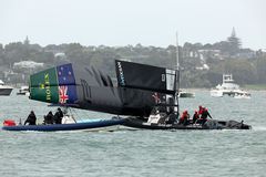 Grand Prix Nýja-Sjálands á Sail GP-mótaröðinni fór fram í gær en slysið setti skugga á keppnina. Blaðamenn á svæðinu segja slysið vera á meðal þeirra verri sem sést hafa í keppnum sem slíkum en bátur nýsjálenska liðsins kipptist til, snerist 90 gráður, og skaust á bát Frakka á um 100 kílómetra hraða. Tveir voru fluttir á sjúkrahús eftir slysið en enginn í lífshættu. Louis Sinclair úr liði Nýja-Sjálands var annar þeirra sem fór á sjúkrahús en hann þurfti að undirgangast aðgerð vegna beinbrots í hægri fótlegg en braut einnig vinstri fótinn. Manon Audinet úr liði Frakka kipptist harkalega til í stýriklefa franska bátsins með þeim afleiðingum að stýri bátsins mölbrotnaði. Hún er líkt og Sinclair á spítala en úr lífshættu. Ástralir fögnuðu sigri í keppninni er hún gat haldið áfram eftir langa bið meðan gert var að Nýsjálendingum og Frökkum eftir slysið. Bátur nýsjálenska liðsins er gjörónýtur og herma fréttir að engin leið sé fyrir liðið að taka þátt í næstu keppni í mótaröðinni sem fram fer í Ástralíu eftir tvær vikur.