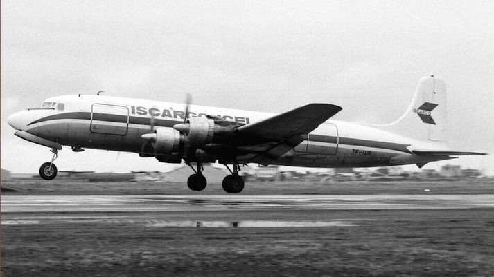 Flugfélagið Iscargo starfaði á árunum 1972 til 1982. Lengst af rak það tvær DC 6-flugvélar en undir lokin eina Lockheed Electra-vél. Í þættinum Flugþjóðin á Sýn+ um litlu flugfélögin er rætt við einn af flugmönnum Iscargo, Reidar Kolsöe. „Þegar hún fór í loftið, - ef þú fórst til norðurs þá hristust nú allar rúður í miðbænum því að við bara rétt skriðum yfir þökin. Og ef við fórum til suðurs, þá þurftum við að taka beygju eftir að við komum framhjá skreiðarskýlinu til að komast yfir Kársnesbrautina. Því að hún klifraði ekki neitt,“ segir Reidar. Iscargo-sexa í flugtaki af Reykjavíkurflugvelli.Baldur Sveinsson Og hefur eftir kunningja sínum að á skrifstofu Flugmálastjórnar hafi jafnan ríkt spenna í hvert sinn. „Þá var alltaf kallað: „Strákar, strákar! Iscargo er að fara í loftið!“ Þá fóru þeir alltaf upp í turn að fylgjast með. Komast þeir í loftið eða komast þeir ekki í loftið?“ segir Reidar Kolsöe og hlær en hann lýsir Iscargo-árunum sem mesta ævintýri síns flugferils. Hér má sjá fjögurra mínútna kafla: Flugtökin frá Reykjavík urðu öruggari með Lockheed Electra-vélinni sem Iscargo fékk árið 1980. Reidar segir hana eina besta flugvél sem hann hafi flogið. Hún hafi verið eins og raketta í loftið og farið upp nánast eins og þyrla. Lockheed Electra-flugvél Iscargo.Pétur P. Johnson Iscargo keypti Flugfélagið Vængi árið 1979. En svo tók að fjara undan rekstrinum og árið 1981 keypti Arnarflug Vængjahluta Iscargo og hóf innanlandsflug. Arnarflaug keypti svo Iscargo árið 1982 og fylgdi flugleyfi til Amsterdam með í kaupunum. Kristinn Finnbogason, kraftaverkamaður Framsóknarflokksins, var þá orðinn aðaleigandi Iscargo en miklar pólitískar deilur urðu í landinu vegna þeirra viðskipta, sem Reidar rifjar upp í viðtalinu. Eftir að rekstri Iscargo lauk stóðu sexurnar lengi óflughæfar við flugskýli 3 á Reykjavíkurflugvelli. Framhlutar beggja eru varðveittir á íslenskum flugminjasöfnum.Baldur Sveinsson Framhlutar DC 6-véla Iscargo fóru báðir á safn. Annar er utan á Flugsafni Íslands á Akureyri en hinn er á Flugsafninu á Hnjóti í Örlygshöfn. Framhluti DC 6-flugvélarinnar utan á Flugsafni Íslands á Akureyri.Egill Aðalsteinsson Áskrifendur geta séð alla þætti Flugþjóðarinnar í heild á streymisveitunni Sýn+.