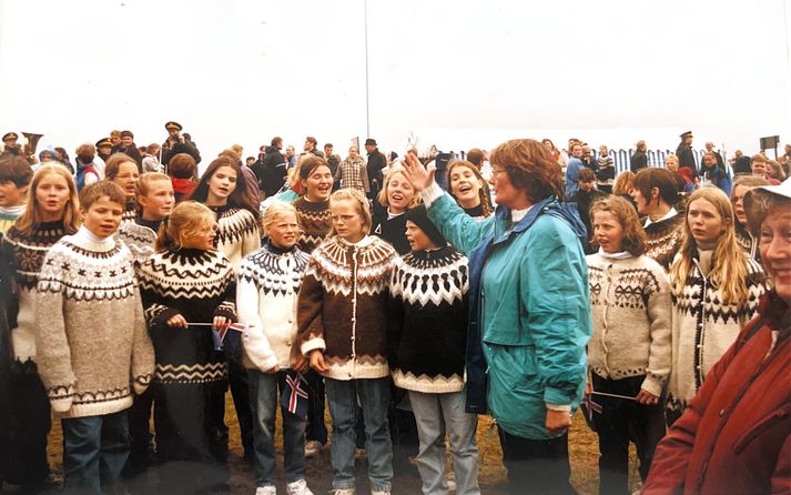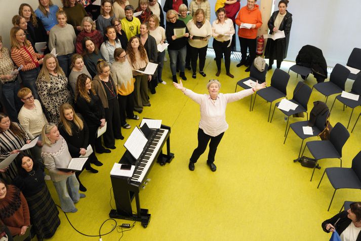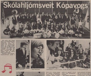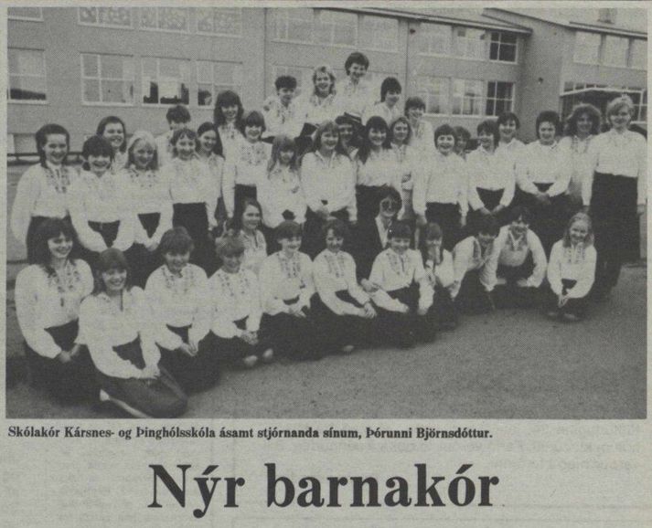 Skólakór Kársness var stofnaður formlega 7. mars 1976 og fagnar því fimmtíu ára afmæli í dag. Af því tilefni verða haldnir þrennir tónleikar í Salnum í dag þar sem 300 kórbörn úr Kársnesskóla og Barnaskóla Kársness koma fram auk fyrrverandi kórbarna. Fyrstu tveir tónleikarnir, með blönduðum kórahópum úr skólunum, eru klukkan 13 og 14:30 og svo stígur Stjörnukór Kársness á svið klukkan 16:30 en það er opin æfing fyrir fyrrverandi kórfélaga. Í tilefni afmælisins sótti blaðamaður Tótu heim í íbúð hennar í Tryggvagötu en hún flutti þangað fyrir nokkrum árum eftir að hafa búið á Kársnesinu í áratugi. „Þá skaltu bara læra það“ Tóta hætti að stýra Kársneskórnum fyrir nokkrum árum og settist í helgan stein en hefur stokkið til og stýrt honum þegar í hana er kallað. Þess utan hefur hún nóg að gera, ferðast innan- sem utanlands og ver miklum tíma með barnabörnunum. Þegar blaðamaður bankaði upp á var fjögurra ára sonardóttirin Magnea einmitt í heimsókn og þær stöllur að spila. Meðan Magnea lék sér settist Tóta niður með blaðamanni og ræddi Skólakór Kársness, æviferilinn og stöðu tónlistarkennslu í íslenskum grunnskólum. „Ég er búin að segja þessa sögu svo oft,“ segir Tóta þegar blaðamaður biður um að heyra söguna af því hvernig Skólakór Kársness varð til. En hún lætur samt segjast. Umfjöllun um Skólahljómsveit Kópavogs í Þjóðviljanum 1974. „Þetta byrjar þannig að ég var í skólahljómsveit Kópavogs og við æfðum alltaf úti í Kársnesskóla. Ég var komin í tónmenntakennaradeildina og fékk þá símtal frá Birni Guðjónssyni sem sagði: „Þú átt að koma út í Kársnesskóla á morgun og hitta Gunnar skólastjóra“.“ „Til hvers?“ hafi Tóta svarað. „Þú átt að stjórna kór,“ svaraði hann. „Ég kann það ekki, Björn.“ „Þá skaltu bara læra það.“ Tóta var þá 21 árs gömul og á öðru ári við tónmenntakennaradeild Tónlistarskóla Kópavogs. „Þannig byrjaði þetta og fyrsti hópurinn minn voru sextíu börn, frá sjö upp í tólf ára gömul. Þetta var ótrúlega mikil lífsreynsla og það hjálpaði mér að ég hafði verið dugleg að passa börn og hafði verið að vinna í leikskólum,“ segir hún. Tóta stýrði lúðrasveit í kvennaverkfallinu 1975. „Ég hafði ekkert verið að kenna af viti, var í kennaradeildinni og hafði verið að spila sjálf og stjórnaði stundum yngstu lúðrasveitinni í Skólahljómsveit Kópavogs. Ég var búin að æfa þau veturinn áður en það var bara allt öðruvísi, því þá eru allir með sitt hljóðfæri og blása í það, en þarna þurfti ég að kenna lög og nótur,“ segir Tóta. „Þetta var öðruvísi og ég var skíthrædd við tólf ára strákana. Mér fannst þeir svo nálægt mér í aldri. En svo eru þeir algjörir perluvinir mínir enn í dag, þessir krakkar.“ „Svo þurfti maður að vera svo skemmtilegur því þetta var svo stór hópur og breitt aldursbil. Síðan hélt ég áfram, var að æfa mig og læra þetta og er ennþá að læra,“ segir hún. Mynd frá tónleikum skólakórsins árið 1983. Tvennt gjörbreytti starfinu Tóta spilaði þetta eftir eyra, fékk frjálsar hendur og leyfði sönggleðinni að leiða hana áfram. Þá reyndust eldri kórstjórar afar hjálpsamir, hún gat alltaf hringt í Egil í Öldutúni og Guðfinnu Þóru í Garðabæ og fengið nótur. „Ég var komin með hálfa stöðu þegar ég var á lokaárinu mínu í Kársnesskóla. Mér leið svo vel þar að mér fannst ég vera komin heim, þetta voru svo dásamlegir samkennarar og samstarfsfólk og ég hef aldrei getað hugsað mér að vinna nokkurs staðar annars staðar,“ segir Tóta. Tóta með Álfheiði sem tók við skólakórnum.Vísir/Lýður „Ég var einmitt á kóræfingu með Álfheiði kórstjóra upp í skóla um daginn og þegar ég kom inn á kennarastofu sagði ég hátt og snjallt: „Ég botna ekkert í því af hverju ég hætti að kenna.“ Ég skemmti mér svo vel,“ segir hún. En ef við spólum aftur á byrjunina á seinni hluta áttunda áratugarins þá varð skólakórinn strax mjög vinsæll í Kársnesskóla. „Það var ekkert mikið að gerast í félagsstarfi hjá börnum á þessum tíma þannig þetta voru risastórir hópir. Við skiptum þessu og það voru komnir þrír-fjórir aldursskiptir hópar,“ segir hún. Tóta stýrir stelpunum.Vísir/Lýður Tvennt gjörbreytti starfinu hjá Tótu og átti þátt í að festa skólakórinn í sessi og fá hann til að blómstra. „Þegar skólinn var tvísetinn óskuðu foreldrar eftir skólaakstri fyrir krakkana sem bjuggu niðri í Sæbólshverfi til þess að komast á kóræfingar. Þá sagði Kópavogsbær að það kæmi ekki til greina og skólastjórinn yrði að koma þessu inn á stundaskrá,“ segir Tóta sem varð þar með fyrsti kórstjórinn til að koma kórstarfi inn í stundaskrá. „Þannig þróaðist þetta og var orðið svo mikið hjá mér að Kópavogur bauð mér loksins, eftir tuttugu ár, að nota hluta af stöðunni minni sem kórstjóri. Ég þurfti alltaf að kenna fulla stöðu sem tónmenntakennari og svo var afgangurinn kór. Þetta var orðin svo mikil vinna að ég var alltaf þarna,“ segir hún. „Þetta tvennt gjörbreytti stöðunni, bæði að meta kórstarf sem kennslu og að fá krakkana á kóræfingar á skólatíma. Þetta breytti öllu, er sérstaða Kársnesskóla og ástæðan fyrir því hvað kórstarfið hefur blómstrað.“ „Þetta eru engin aukafög“ „Það sem gerir kórstarf svo sérstakt er að það er svo mikil samvinna, samkennd og samhjálp. Allir upplifa eitthvað saman og það skipta allir jafnmiklu máli, það er svo þýðingarmikið. Það er ekki þessi samkeppni, eins og krakkar finna í mörgu öðru þar sem einhverjir komast ekki