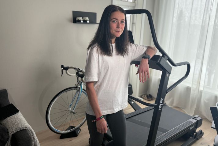 „Ég er eiginlega bara enn þá að meðtaka þetta. Þetta er mjög stórt og ég er ekki alveg að átta mig á hversu stórt þetta er,“ segir Elísa í Sportpakkanum á Sýn í gær. „Ég var búin að setja upp plan sem að var upp á 6:30 en ég var líka búin að segja við sjálfa mig að það væri eiginlega óraunhæft. Svo enda á 6:22 klst, eitthvað sem ég var aldrei að búast við,“ segir Elísa sem hljóp nánast allar sex klukkustundirnar í einni beit. „Það eru 3.000 hæðarmetrar í þessu en þetta eru mjög aflíðandi og þægilegar brekkur til þess að hlaupa. Ég hægði bara mjög lítið á mér.“ Frá Tene til Flórens Umrætt hlaup fór fram í Flórens á Ítalíu en hún átti að vera að hlaupa á Tenerife. „Það er alveg ár síðan ég skráði mig í það hlaup og ég var mjög spennt að fara að hlaupa á Tenerife. Ég hljóp þetta hlaup í fyrra á Tenerife og ég villtist í brautinni. Svo er ég að fara út bara á miðvikudagsmorgni og hlaupinu er kanselað á þriðjudagskvöldi. Þannig að ég hef samband við þetta hlaup á Ítalíu og fæ miða þar inn og á miðvikudagsmorgni er ég bara í flugvél á leiðinni til Ítalíu.“ Elísa er með hlaupabretti í stofunni sem getur farið upp í 20% halla. Þar æfir hún sig reglulega.Vísir/bjarni Með sigrinum um helgina hefur hún tryggt sig inn á annað stórt hlaup. „Ég er komin með miða í CCC sem að er stærsta hlaupið í þessari UTMB-seríu. Svo í lok ágúst þá er stærsta hlaupið í 100 kílómetra flokknum sem ég er að fókusera á. Ég er bara mjög þakklát fyrir þau fyrirtæki sem eru að styðja við bakið á mér og gera mér kleift að geta verið að sinna sportinu mínu og ég er með dásamlega þjálfara. Ég er í fjallahlaupaþjálfun og á bara mjög gott samband við Tobba, þjálfara minn, og við tölum saman nánast daglega sem er bara alveg ómetanlegt og hann hjálpar mér alveg ótrúlega mikið.“