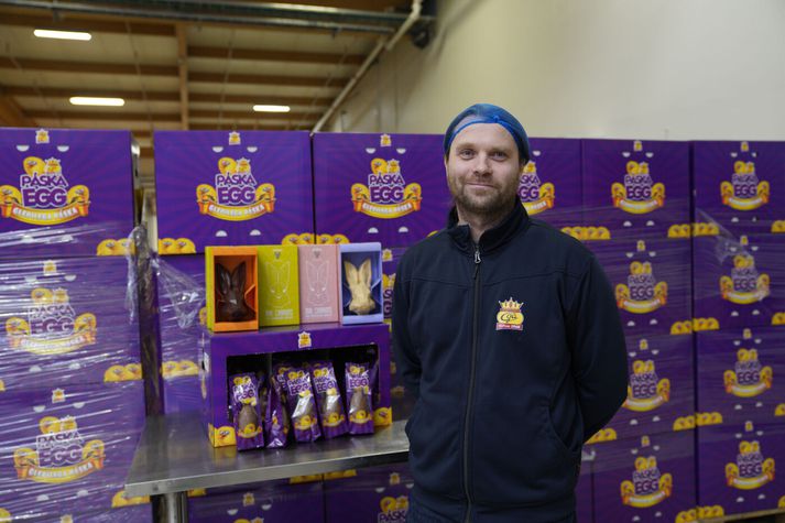 Hokinn af reynslu og vill stórt egg fyrir strákinn Smári Jökull Jónsson skrifar 27. mars 2026 10:10 Verið var að undirbúa síðustu eggin fyrir þessa páska en framleiðsla páskaeggja hófst um áramótin. Vísir/Lýður Valberg Páskaeggjavertíðin er í hámarki um þessar mundir en alls eru framleidd á aðra milljón súkkulaðieggja fyrir súkkulaðiþyrsta landsmenn. Í verksmiðju Góu var framleiðsla á páskaeggjum fyrir starfsfólk Landspítalans í fullum gangi. Góa framleiðir hátt í hálfa milljón eggja fyrir páskana og höfðu lokið framleiðslu þegar ákveðið var að ræsa vélarnar á nýju til að framleiða egg fyrir starfsfólk Landspítalans. Alls þurfti að bæta við sex þúsund páskaeggjum. Greint var frá því í vikunni að vegna niðurskurðar fengju starfsmenn Landspítalans engin páskaegg gefins þetta árið. Forráðamenn Góu ákváðu að grípa í taumana og gefa starfsfólkinu egg og í gær mætti Ragnar Freyr Ingvarsson, formaður læknafélags Reykjavíkur, og aðstoðaði við framleiðsluna. „Okkur finnst náttúrulega ekki nógu gott að það sé ekki verið að gefa fólki páskaegg, framlínufólkinu á spítalanum. Það er fólkið sem er að vinna vinnuna og hugsa um okkur þannig að við verðum að gefa þeim páskaeggin í ár,“ sagði Helgi Már Gíslason, framkvæmdastjóri Góu og barnabarn hins eina sanna Helga í Góu. Hann segir skemmtilega stemmningu skapast hjá fyrirtækinu þegar framleiðsla eggjana fer á fullt um áramótin. Síðustu eggin fara í verslanir á morgun og þá tekur við skemmtileg hefð starfsmanna. „Við stöndum vaktina til miðnættis í kvöld að steypa þessi egg og svo eftir hádegið á morgun þá fær allt starfsfólkið að koma og búa til sín eigin páskaegg og skreyta og koma með nýjar hugmyndir fyrir næsta ár,“ sagði Helgi í viðtali í gær. Helgi Már er framkvæmdastjóri Góu.Vísir/Lýður Valberg Starfsmenn voru í óða önn að koma sælgæti fyrir í síðustu eggjunum og skreyta. „Þetta er fyrir spítalann, við erum að byrja núna og ég held að við klárum í dag,“ segir Choosri sem unnið hefur hjá Góu í 25 ár. Hún er ekki í neinum vafa hvert sé hennar uppáhaldsegg. „Ég vil fá stórt egg,“ segir hún hlæjandi. „Fyrir strákinn minn,“ bætir hún svo við. Choosri hefur unnið í 25 ár hjá Góu og er hér á fullu að koma sælgæti fyrir inni í páskaeggjunum sem fara til starfsfólks Landspítalans.Vísir/Lýður Valberg Rúsínan í pylsuendanum eru svo páskaungarnir sem þurfa að fara á sinn stað. Fréttamaður fékk að spreyta sig í skreytingum eggjanna eins og sjá má í myndbandinu hér fyrir neðan en ólíklegt verður þó að teljast að honum verði boðin vinna við slíkt á næstunni. Páskar Landspítalinn Sælgæti Tengdar fréttir Gremja innan Landspítala vegna stóra páskaeggjahallærisins Ragnar Freyr Ingvarsson, sem bæði starfar sem sjálfstætt starfandi læknir sem og inni á Landspítalanum, furðar sig á forgangsröðunni en á Landspítalanum hefur verið tekin ákvörðun um að gefa starfsfólki ekki páskaegg í ár vegna niðurskurðarkröfu. Á sama tíma fær starfsfólk í heilbrigðisráðuneytinu páskaegg og ráðherra gefur ráðherrum veglegt egg. 25. mars 2026 10:51 Mest lesið Barn strauk af leikskóla í Hafnarfirði Innlent Fimmtán ára stúlka drap tvo fyrir Foxtrot-gengið Erlent Verslun opnar á varnarsvæðinu en viðveran stendur í stað Innlent Ætla ekki að reka legurými í Klíníkinni Innlent Rasískur reiðilestur Trump: Lýsti Sómölum sem „heimsku“ og þjófóttu fólki Erlent Kastaðist marga metra eftir að ekið var á hann Innlent Fékk dánaraðstoð í gær eftir harða baráttu við föður sinn Erlent Heuermann sagður ætla að játa Erlent Meint kynferðisbrotamál rannsakað í tvígang en fellt niður Innlent Lægðin heldur áfram að angra landsmenn Veður Fleiri fréttir Alvarlegur misbrestur hafi orðið hjá barnaverndarþjónustu Reykjanesbæjar Tekur undir gagnrýni á umdeildan fyrirlestur eigin stofnunar Bein útsending: Árangur í krabbameinsmeðferð – hvað getum við bætt? Meint kynferðisbrotamál rannsakað í tvígang en fellt niður Röskva bar sigur úr býtum Hokin af reynslu og vill stórt egg fyrir strákinn Barn strauk af leikskóla í Hafnarfirði Norðurevrópskir bandamenn funda á Íslandi á næsta ári Verslun opnar á varnarsvæðinu en viðveran stendur í stað Ætla ekki að reka legurými í Klíníkinni Árnesingur og Rangæingur grafa fyrir Hvammsvirkjun „Sem betur fer er okkar maður ekki illa meiddur“ Kastaðist marga metra eftir að ekið var á hann Snör handtök skiptu sköpum á Höfðatorgi Sjö vilja stýra Sjúkrahúsinu á Akureyri Árekstur í Borgarfirði 2025: Hálka ein meginorsaka banaslyss Fækka stöðugildum hjá ríkinu um eitt prósent Bein útsending: Daði Már kynnir fjármálaáætlunina Forseti Slóveníu mætir á afmælisdegi Vigdísar Líf leiðir Sjálfstæðisflokk áfram á Akranesi Stúlkan er fundin Opna nýja möguleika í að binda kolefni með aðferð Carbfix Neita að afhenda dóma lögreglumanna Varð fyrir „áfalli“ að sjá uppsagnarbréf Málþing um konur sem lifa við langvinn veikindi Telja að bílastæðum fækki eftir að þau voru færð úr uppdráttum Þakklátur að flestir fylgdu tilmælunum Geta ekki siglt Herjólfi að höfninni vegna óveðursins Barnlaus leikskóli Menningarhúsið fer ekki í íbúakosningu Sjá meira