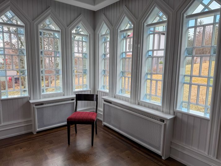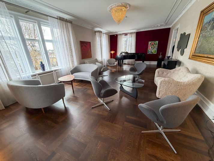 Umfangsmiklar endurbætur hafa staðið yfir á ráðherrabústaðnum við Tjarnargötu síðustu misserin en framkvæmdir hófust haustið 2023. Meðal annars voru brunavarnir hússins uppfærðar með úðakerfi, lagnir endurnýjaðar og aðgengi fyrir hreyfihamlaða bætt. Áætlaður kostnaður við hönnun og framkvæmdir er 336 milljónir en kostnaður við húsgögn og annan búnað liggur ekki fyrir. Í vikunni fundaði ríkisstjórnin í bústaðnum í fyrsta sinn eftir að framkvæmdum lauk. Ráðherrabústaðurinn við Tjarnargötu.Vísir/Vilhelm Arkitekt segir að húsið fái nú aftur þann karakter sem það hafði en meðal annars var blómastofa endurbyggð og stækkuð sem áður hafði verið ein mesta prýði ráðherrabústaðsins. „Manni fannst í þessu tilfelli rétt að halda í sál hússins, halda í anda hússins eins og hægt var. Ná fram gömlum frágangi og gömlum efnum,“ sagði Páll Hjaltason arkitekt en hann kom að vinnu við endurbæturnar. Páll Hjaltason arkitekt.Vísir/Vilhelm Feneyjatvíæringurinn er þema verka sem prýða veggi ráðherrabústaðsins en öll listaverkin eru eftir Íslendinga sem sýnt hafa verk sín á hátíðinni. Þar er meðal annars verk eftir Jóhannes Kjarval frá árinu 1930 en Jóhannes var fyrsti Íslendingurinn sem sýndi verk á hátíðinni árið 1960. Þar er einnig verk eftir Hildigunni Birgisdóttur sem sýndi verk sín fyrir tveimur árum. Listaverk eftir Íslendinga sem sýnt hafa verk á Feneyjatvíæringnum prýða veggi ráðherrabústaðsins en hér má meðal annars sjá verk eftir Jóhannes Kjarval og Hildigunni Birgisdóttur.Vísir/Vilhelm Hönnuður sem kom að vinnu við ráðherrabústaðinn segir það hafa verið einstaklega skemmtilegt að fá að kafa ofan í merka sögu hússins. „Að kynnast húsinu og ná í hluti sem voru kannski ekki alveg upp á sitt besta en eru orðnir það í dag. Húsið er náttúrulega einstaklega fagurt,“ segir Steinunn Sigurðardóttir hönnuður. Af hverju ertu stoltust hér inni? „Ég held að það sé veggfóðrið.“ Steinunn Sigurðardóttir hönnuður kom að endurbótum ráðherrabústaðsins við Tjarnargötu.Vísir/Vilhelm Hvað er það sem gerir þig svona stolta yfir því? „Þetta er ofið efni, í gömlum húsum var þetta þannig og við náðum því eftir langan tíma að finna það en mikið lifandi, undur og ósköp er þetta fallegt.“ Páll segir Íslendinga stolta af því að geta boðið erlendum ráðamönnum í heimsókn. „Mér finnst ótrúlega gaman að hafa komið þessu húsi í fulla og virðulega notkun.“ RáðherrabústaðurinnVísir/Vilhelm Þessi ljósakróna hefur verið í ráðherrabústaðnum frá upphafi.Vísir/Vilhelm Í borðstofunni er gert ráð fyrir að hægt verði að halda á fundi og taka á móti gestum.Vísir/Vilhelm Úr sólskálanum sem var endurbyggður og stækkaður.Vísir/Vilhelm Glæsilegur flygill í ráðherrabústaðnum.Vísir/Vilhelm RáðherrabústaðurinnVísir/Vilhelm Í bústaðnum er aðstaða fyrir lögreglu.Vísir/Vilhelm