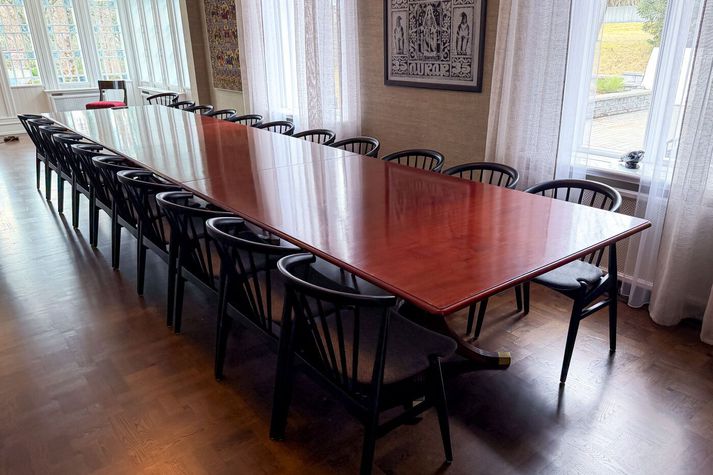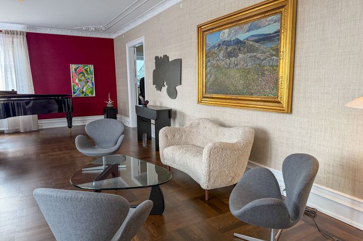 „Húsið er náttúrulega einstaklega fagurt“ Smári Jökull Jónsson skrifar 17. apríl 2026 07:00 Miklar endurbætur hafa átt sér stað í ráðherrabústaðnum við Tjarnargötu. Vísir/Vilhelm Ráðherrabústaðurinn við Tjarnargötu er aftur kominn í notkun eftir miklar framkvæmdir síðustu árin. Feneyjatvíæringurinn er þema listaverka í húsinu og hönnuður sem kom að endurbótum segist stoltust af veggfóðrinu. Umfangsmiklar endurbætur hafa staðið yfir á ráðherrabústaðnum við Tjarnargötu síðustu misserin en framkvæmdir hófust haustið 2023. Meðal annars voru brunavarnir hússins uppfærðar með úðakerfi, lagnir endurnýjaðar og aðgengi fyrir hreyfihamlaða bætt. Áætlaður kostnaður við hönnun og framkvæmdir er 336 milljónir en kostnaður við húsgögn og annan búnað liggur ekki fyrir. Í vikunni fundaði ríkisstjórnin í bústaðnum í fyrsta sinn eftir að framkvæmdum lauk. Ráðherrabústaðurinn við Tjarnargötu.Vísir/Vilhelm Arkitekt segir að húsið fái nú aftur þann karakter sem það hafði en meðal annars var blómastofa endurbyggð og stækkuð sem áður hafði verið ein mesta prýði ráðherrabústaðsins. „Manni fannst í þessu tilfelli rétt að halda í sál hússins, halda í anda hússins eins og hægt var. Ná fram gömlum frágangi og gömlum efnum,“ sagði Páll Hjaltason arkitekt en hann kom að vinnu við endurbæturnar. Páll Hjaltason arkitekt.Vísir/Vilhelm Feneyjatvíæringurinn er þema verka sem prýða veggi ráðherrabústaðsins en öll listaverkin eru eftir Íslendinga sem sýnt hafa verk sín á hátíðinni. Þar er meðal annars verk eftir Jóhannes Kjarval frá árinu 1930 en Jóhannes var fyrsti Íslendingurinn sem sýndi verk á hátíðinni árið 1960. Þar er einnig verk eftir Hildigunni Birgisdóttur sem sýndi verk sín fyrir tveimur árum. Listaverk eftir Íslendinga sem sýnt hafa verk á Feneyjatvíæringnum prýða veggi ráðherrabústaðsins en hér má meðal annars sjá verk eftir Jóhannes Kjarval og Hildigunni Birgisdóttur.Vísir/Vilhelm Hönnuður sem kom að vinnu við ráðherrabústaðinn segir það hafa verið einstaklega skemmtilegt að fá að kafa ofan í merka sögu hússins. „Að kynnast húsinu og ná í hluti sem voru kannski ekki alveg upp á sitt besta en eru orðnir það í dag. Húsið er náttúrulega einstaklega fagurt,“ segir Steinunn Sigurðardóttir hönnuður. Af hverju ertu stoltust hér inni? „Ég held að það sé veggfóðrið.“ Steinunn Sigurðardóttir hönnuður kom að endurbótum ráðherrabústaðsins við Tjarnargötu.Vísir/Vilhelm Hvað er það sem gerir þig svona stolta yfir því? „Þetta er ofið efni, í gömlum húsum var þetta þannig og við náðum því eftir langan tíma að finna það en mikið lifandi, undur og ósköp er þetta fallegt.“ Páll segir Íslendinga stolta af því að geta boðið erlendum ráðamönnum í heimsókn. „Mér finnst ótrúlega gaman að hafa komið þessu húsi í fulla og virðulega notkun.“ RáðherrabústaðurinnVísir/Vilhelm Þessi ljósakróna hefur verið í ráðherrabústaðnum frá upphafi.Vísir/Vilhelm Í borðstofunni er gert ráð fyrir að hægt verði að halda á fundi og taka á móti gestum.Vísir/Vilhelm Úr sólskálanum sem var endurbyggður og stækkaður.Vísir/Vilhelm Glæsilegur flygill í ráðherrabústaðnum.Vísir/Vilhelm RáðherrabústaðurinnVísir/Vilhelm Í bústaðnum er aðstaða fyrir lögreglu.Vísir/Vilhelm Hús og heimili Húsavernd Mest lesið „Það er ósatt, ósatt með öllu“ Innlent Kennarasambandið mismunaði konu Innlent „Fokk ðe queers og fullt af atkvæðum?“ Innlent Útlit fyrir að íslensk stjórnvöld brjóti gegn alþjóðasamningum Innlent Stóra aðgerðin valdi titringi á fíkniefnamarkaði Innlent Stöðvaður með of marga farþega og einn í skottinu Innlent Samningur um Ísafjörð tryggir rekstur Q200-véla Icelandair Innlent „Húsið er náttúrulega einstaklega fagurt“ Innlent Aðstoðarskólastjóri Stapaskóla biður nærsamfélagið um hjálp Innlent Dæmdur í 30 daga skilorðsbundið fangelsi fyrir að ráðast á dreng vegna dyraats Innlent Fleiri fréttir Dæmdur í 30 daga skilorðsbundið fangelsi fyrir að ráðast á dreng vegna dyraats „Húsið er náttúrulega einstaklega fagurt“ Stöðvaður með of marga farþega og einn í skottinu „Það er ósatt, ósatt með öllu“ Samningur um Ísafjörð tryggir rekstur Q200-véla Icelandair Kennarasambandið mismunaði konu Útlit fyrir að íslensk stjórnvöld brjóti gegn alþjóðasamningum „Fokk ðe queers og fullt af atkvæðum?“ Meitlarnir komust loks í forgang eftir stefnubreytingu Stóra aðgerðin valdi titringi á fíkniefnamarkaði Ekki síður í vandræðum með bóklega kennslu Áhrif smyglmáls og hugsanleg brot stjórnvalda á alþjóðlegum skuldbindingum Flúði heimili sitt eftir að hafa hótað stofnun MMS ekki kunnugt um neinar breytingar á einkunnagjöf Aðstoðarskólastjóri Stapaskóla biður nærsamfélagið um hjálp Félag Ragnars Freys telur uppsögn hans ólögmæta Skálmöld stígur ölduna í héraðsdómi „Áfall fyrir starfsfólk“ Nefndin sammála Ólafi Ragnari um skipun forsetaritara Hækjubræður á þingi Framsókn kynnti tillögu að þjóðarsátt Skólameistari hefur fengið nóg og segir af sér Sprengingin í Fóðurblöndunni enn til rannsóknar hjá lögreglu og Vinnueftirlitinu Bein útsending: Beina sjónum að leit og björgun á norðurslóðum „Ég kann ekki að meta það þegar ég er sökuð um ósannindi eða blekkingar“ Varnarsigur segir formaður bæjarráðs Ísafjarðar Tíu tilvik í fyrra þar sem látnir lágu ófundnir í viku eða lengur 37 prósent landsmanna fylgjandi innheimtu veggjalda Ekkert verður af bankasamruna og Ísafjarðarflugið lifir „Það er ekki hægt að taka jafnaðarmanninn úr mér“ Sjá meira