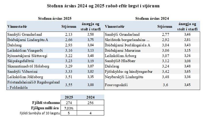 Að koma heim úr vinnu með hnút í maganum, kvíða og ótta – og vita að maður þarf að mæta aftur daginn eftir. Þetta er ekki undantekning. Þetta er veruleiki sem of margir starfsmenn búa við. Vinnustaðurinn á að vera vettvangur öryggis, samstarfs og þróunar. En þegar yfirmaðurinn verður uppspretta ótta breytist hann í andhverfu sína – stað þar sem fólk brotnar niður, smám saman. Vanlíðan vegna yfirmanns er ekki „bara streita“. Hún grefur undan sjálfsmynd fólks. Kvíði, minnkað sjálfstraust og stöðug tilhneiging til að forðast aðstæður verða hluti af daglegu lífi. Sumir einangrast, aðrir missa trú á eigin getu – og í alvarlegri tilvikum sér fólk enga aðra leið en að veikjast til að komast undan. Líkaminn bregst ekki síður við. Svefnleysi, höfuðverkir, magaverkir og síþreyta eru algeng einkenni. Þetta er verð sem fólk borgar fyrir slæma stjórnun. Og þegar þetta ástand varir lengi leiðir það ekki sjaldan til kulnunar. Rót vandans liggur oft í hegðun yfirmannsins. Hún getur verið lúmsk – eins og útilokun og vantraust – eða opin og gróf, í formi niðurlægingar og ógnana. Þetta er ekki „harður stjórnunarstíll“. Þetta er óheilbrigð hegðun sem getur valdið raunverulegum skaða. Og þetta er ekki nýtt. Strax í Hawthorne rannsóknum Elton Mayo (1924) kom fram að vinnustaðir eru fyrst og fremst félagsleg kerfi. Þegar samskipti og stjórnun bresta, þá brestur ekki bara árangurinn – heldur fólkið sjálft. Hawthorne rannsóknir Elton Mayo eru taldar upphafið að því sem við köllum „mannauðsstjórnun“ í dag. Þær breyttu því hvernig litið er á vinnustaði: úr því að vera bara „vélar“ yfir í að vera félagsleg kerfi. Elton Mayo: Lagði til að stjórnendur væru þjálfaðir í að hlusta á starfsmenn til að láta þá finna að þeir séu metnir að verðleikum (Stjórnun með samráði). Stofnun ársins 2025 – þegar gögnin tala Frásagnir starfsmanna eru ein hlið málsins. Gögnin segja aðra – og í þessu tilviki, sömu – sögu. Í niðurstöðum könnunar um Stofnun ársins 2025 hjá Reykjavíkurborg kemur fram að Sambýlið Grundarland er meðal þeirra vinnustaða sem fá lægstu einkunn í stjórnun. Einkunnin er 2,13 og hefur lækkað frá fyrra ári. Þegar þessi niðurstaða er sett í samhengi við frásagnir starfsmanna verður myndin óþægilega skýr. Þar sem fólk lýsir ótta og vanlíðan, endurspeglast það í mælanlegum niðurstöðum. Athygli vekur að ánægja og stolt í starfi mælist hærra en stjórnun. Það bendir til þess að starfsfólk vilji starfið sitt – en upplifi stjórnunarvandamál. Þegar bæði frásagnir og gögn benda í sömu átt er erfitt að líta á það sem tilviljun. Niðurstöður úr könnuninni Stofnun ársins 2025 sýna að Sambýlið Grundarland er meðal þeirra sem fá lægstu einkunn í stjórnun. Vinnuslys tilfinninganna – frásagnir starfsmanna Í frásögnum núverandi og fyrrverandi starfsmanna við Sambýlið Grundarland birtist ekki eitt einangrað atvik heldur endurtekið mynstur. Þar er lýst vinnuumhverfi sem einkenndist af ótta, smámunasemi, stöðugri gagnrýni og vantrausti. Fólk lýsir því að hafa gengið á eggjum, kviðið vöktum og farið heim úr vinnu niðurbrotið. Sameiginlegur þráður er að aldrei hafi verið hægt að gera rétt. Starfsmenn segja að þeir hafi verið ávítaðir fyrir að taka sjálfstæðar ákvarðanir en jafnframt gagnrýndir fyrir að leita leiðbeininga. Þessi tvöföldu skilaboð sköpuðu ráðaleysi og óöryggi, jafnvel hjá reyndu starfsfólki. Margir lýsa því að smávægileg atriði hafi orðið að tilefni harkalegra viðbragða. Ekki var aðeins um að ræða gagnrýni á verk, heldur framkomu sem upplifuð var sem niðrandi. Með tímanum fóru sumir að efast um eigin hæfni og missa sjálfstraust. Frásagnirnar benda einnig til baktals, sundrungar og þess að starfsfólk hafi skynjað hver væri „í ónáð“ hverju sinni. Óöryggið varð þannig sameiginleg reynsla hópsins. Afleiðingarnar voru djúpar. Svefntruflanir, kvíði, grátur eftir vaktir og forðun eru meðal þess sem starfsfólk lýsir. Sumir hættu störfum – ekki vegna vinnunnar sjálfrar, heldur vegna stjórnunarinnar. Þetta eru ekki aðeins sögur. Þetta eru vinnuslys tilfinninganna. Dreifing einkunna – heildarmyndin Þegar dreifing einkunna er skoðuð kemur í ljós að í tveimur flokkum frá 4 til 5 eru um 85% stofnana mælast með háa einkunn í stjórnun. Góð stjórnun er því ekki undantekning – hún er raunveruleg. Á sama tíma eru tveir flokkar frá 2 til 3,9 eru stofnanir í neðsta flokkum með um 15%. Þegar vinnustaður lendir í þessum flokki bendir það til verulegrar vanlíðanar í starfi. Og þegar slíkar niðurstöður fara saman við frásagnir starfsmanna um kvíða og niðurbrot fær tölfræðin mannlega merkingu. Þetta eru ekki bara tölur. Þetta eru vinnustaðir þar sem fólk er líklegra til að líða illa. Dreifing einkunna í stjórnun sýnir að þótt flestir vinnustaðir standi sig vel, er ákveðin hópur þar sem upplifun starfsfólks er verulega neikvæð. Þegar enginn grípur inn í Þegar slík mynstur koma fram vaknar spurning um ábyrgð. Hún liggur ekki aðeins hjá einstaklingum, heldur einnig hjá kerfinu sem á að bregðast við. Sem dæmi að tveir starfsmenn með yfir 25 ára reynslu fóru að tala um hvernig stjórnunin væri. Var svarið „með nýjum stjórnanda kemur nýir siðir – þið getið bara hætt“. Þegar starfsfólk treystir sér ekki til að tala, þegar kvartanir leiða ekki til sýnilegra breytinga og þegar fólk hættir frekar en að berjast áfram – þá er vandinn orðinn stærri en svo að hann sé einstaklingsbundinn. Þá er þögnin farin að tala. Þögn er ekki hlutleysi. Hún er afstaða. Hvað þarf að breytast? Fyrsta skref