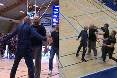 Áttu vart orð yfir tilþrifum í Garðabæ: „Þetta var rosalegt“ Aron Guðmundsson skrifar 25. apríl 2026 20:00 Leikur tvö í einvígi Stjörnunnar og Tindastóls er nú í gangi Vísir/Samsett Lýsendur Sýnar Sport á leik tvö í einvígi Stjörnunnar og Tindastóls áttu vart orð yfir tilþrifum Luka Gasic sem varði tilraun Taiwo Badmus, leikmanns Tindastóls til þess að troða yfir hann. Nú stendur yfir leikur tvö í undanúrslitaeinvígi liðanna í Garðabænum þar sem að Tindastóll reynir að hefna fyrir tap í fyrsta leik liðanna í Síkinu á Sauðárkróki á dögunum. Klippa: „Ég hélt þetta væri ekki hægt“ Stólarnir hafa verið skrefi á undan í leiknum í fyrri hálfleik þegar að þetta er skrifað og í stöðunni 25-33 Tindastól í vil ætlaði Taiwo Badmus, leikmaður liðsins gjörsamlega að brjóta Garðbæinga niður með því að troða boltanum yfir Luka Gasic, leikmanns Stjörnunnar. Badmus hefur í þessari stöðu, með sína hæð og stökkkraft yfirleitt ekki átt í neinum vandræðum með svona troðslur í gegnum tíðina en hann fékk alvöru vörn frá Gasic á móti sér. Gasic varði skot Badmusar og lýsendur leiksins, Heiðar Snær og Jóhann Árni áttu vart orð yfir tilþrifunum. „Þvílík vörn hjá Luka Gasic,“ sagði Heiðar Snær. „Hann mætti honum bara á efstu hæð og blokkaði hann. „Þetta var rosalegt,“ bætti Jóhann við. „Ég hélt þetta væri ekki hægt á móti Badmus,“ sagði Heiðar þá. „Ekki í íslensku deildinni,“ bætti Jóhann þá við. „Ég hef ekki séð þetta áður. Að Badmus sé mætt í þessari hæð.“ Tilþrifin má sjá hér ofar í fréttinni. Leikur liðanna er nú í gangi í beinni útsendingu á Sýn Sport Ísland. Fylgjast má með textalýsingu frá honum í frétt hér fyrir neðan. Bónus-deild karla Tindastóll Stjarnan Mest lesið Leik lokið: Stjarnan 105-103 Tindastóll | Í kjörstöðu eftir flautukörfu í framlengdum leik Körfubolti Glódís stóð vaktina gegn Barcelona og allt opið í einvíginu Fótbolti Sjáðu ótrúlega flautukörfu Hilmars Smára í framlengingu gegn Tindastól Körfubolti Eze skaut Arsenal aftur á toppinn Enski boltinn Áttu vart orð yfir tilþrifum í Garðabæ: „Þetta var rosalegt“ Körfubolti Upp úr sauð milli þjálfaranna í Garðabæ: „Ég bað hann afsökunar“ Körfubolti Salah gæti hafa spilað sinn síðasta leik fyrir Liverpool Enski boltinn „Er ekki að sjá þennan orkumikla bolta sem manni var lofað“ Íslenski boltinn Þriðji sigur Liverpool í röð Enski boltinn Manchester City tryggði sér farmiða í úrslitaleikinn Enski boltinn Fleiri fréttir Upp úr sauð milli þjálfaranna í Garðabæ: „Ég bað hann afsökunar“ Sjáðu ótrúlega flautukörfu Hilmars Smára í framlengingu gegn Tindastól Leik lokið: Stjarnan 105-103 Tindastóll | Í kjörstöðu eftir flautukörfu í framlengdum leik Áttu vart orð yfir tilþrifum í Garðabæ: „Þetta var rosalegt“ Jakob og Linards framlengja veru sína í KR Ótrúlegur LeBron leiddi Lakers til sigurs „Ég má ekki segja leyndarmál“ Sindri einum leik frá úrslitaeinvíginu Keflavík - Haukar 98-81 | Allt jafnt í einvíginu „Við þurfum að vinna leik á mánudaginn“ Breiðablik mun berjast um sæti í Bónus deildinni Grindavík - Njarðvík 94-75 | Grindavík er einum sigri frá úrslitaeinvíginu Talar stöðugt við Kristófer Acox: „Hræddur við að verjast mér“ Pargo: Þurfum að vinna tvo leiki í viðbót Grindavík - Valur 82-81 | Deildarmeistararnir yfir þegar það skipti máli í leik tveggja hálfleika Martin með stigahæstu mönnum í sigri „Við ætlum ekki að nota það sem einhverja hækju“ Skall með höfuðið í gólfið og fékk heilahristing „Bað hann um að segja mér ekki að fokka mér“ Tindastóll - Stjarnan 95-96 | Sóttu fyrsta sigurinn þrátt fyrir áföllin Fyrstur til að vera kosinn varnarmaður ársins með fullu húsi Pressan á Tindastól? „Einhver sálfræði 101 sem hann er að reyna rembast við“ Úlfarnir og Haukarnir með endurkomur Selfyssingar svöruðu fyrir sig Uppgjörið: Haukar - Keflavík 85-71 | Öruggt hjá Hafnfirðingum í fyrsta leik Martin næstum því með stig á mínútu í öruggum sigri Glímir við mikið áfall: „Ennþá smá dauður að innan“ Of mikil pása gæti verið slæm „Vildi að pabbi væri hérna“ Uppgjörið:Valur - Keflavík 90-74| Valsmenn sendu Keflavík í sumarfrí Sjá meira